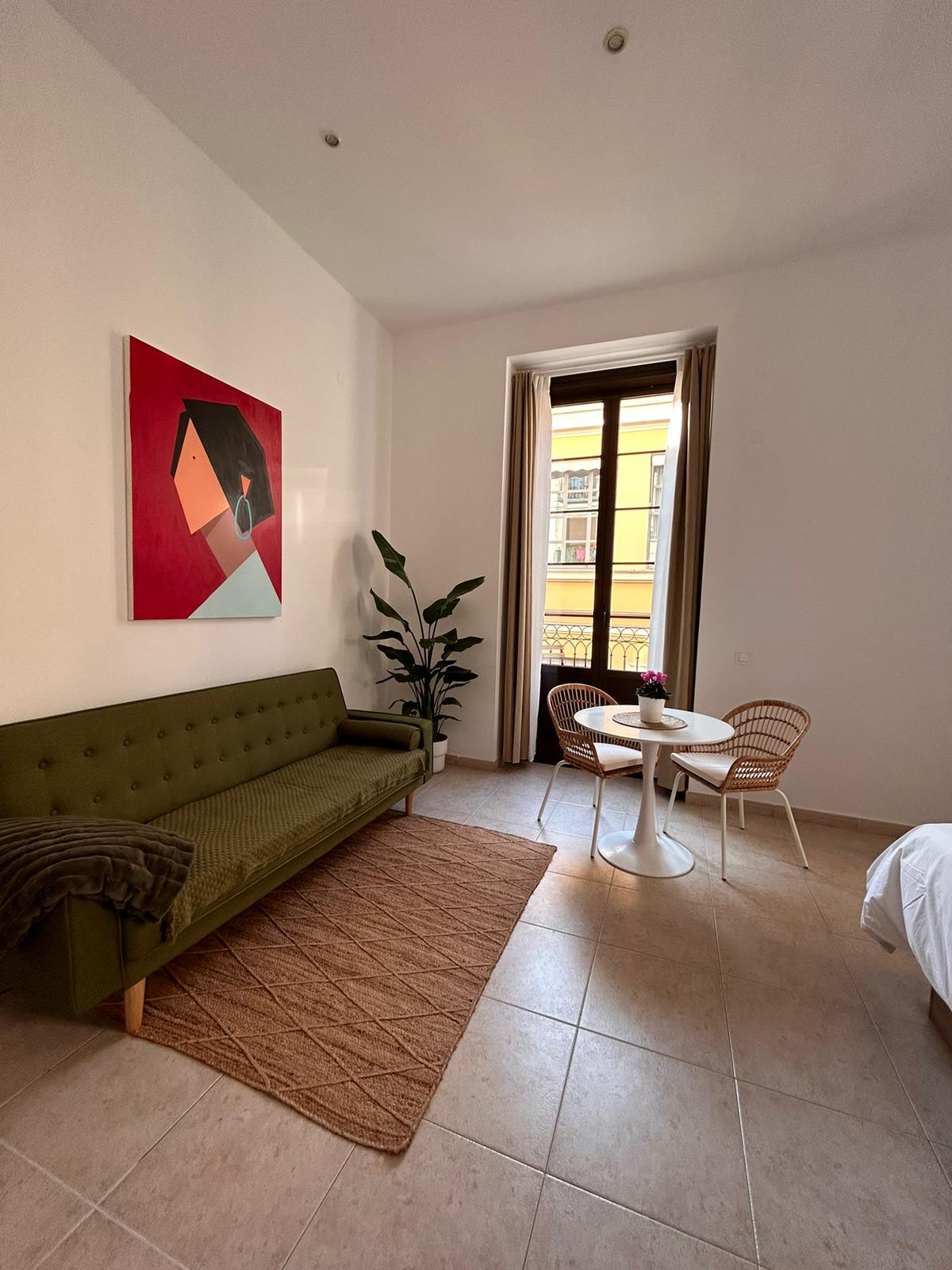 “Vine” apartment is located in Madrid center, off Gran Via, on a quiet street in a new building with elevator. It is nature-inspired, bright & modern, has WiFi, is fully equipped and is very close to restaurants, tapas, the Metro, shops & galleries. Best for a single, couples or couples with a kid! Pets are invited happily!!! The apartment is located in a new buliding, with an elevator! It is modern designed, with lots of greenery, themed to its name, Vine. A huge window along the length of the whole apartment overlooks a beautiful private garden. The apartment consists of a bedroom with a double bed, a living area with a single pull-out sofa, kitchen and bathroom. It has WiFi and is fully equipped, including a washing machine, TV, air conditioning, and Nespresso coffee maker - all just ready for your comfort and enjoyment! The apartment is a studio open space apartment - and it's all yours to enjoy! There are no areas in the apartment that you cannot use or access! We love hosting, but also respect our guests' privacy! We are here for you as much as you would like! Located just off Gran Via in lively buzzing Malasana neighborhood with its great range of authentic cafes, tapas & bars. Huge Zara Primark & Mango are minutes away. Best Madrid sites like Royal Palace, Puerta del Sol & Museums are in walking distance The Central Metro Station Gran Via is a 2 minute walk from the apartment. From there you can take the metro to anywhere you want in Madrid and also to all the train stations that will take you out of Madrid to the rest of Spain. If you come by car, a big parking lot is located at Barco 1, Madrid, just a minute from the apartment. There is also a bicycle-rental station close by. A hosting kit of water, soda, milk, coffee, tea and sweetners will be waiting to welcome you :-)