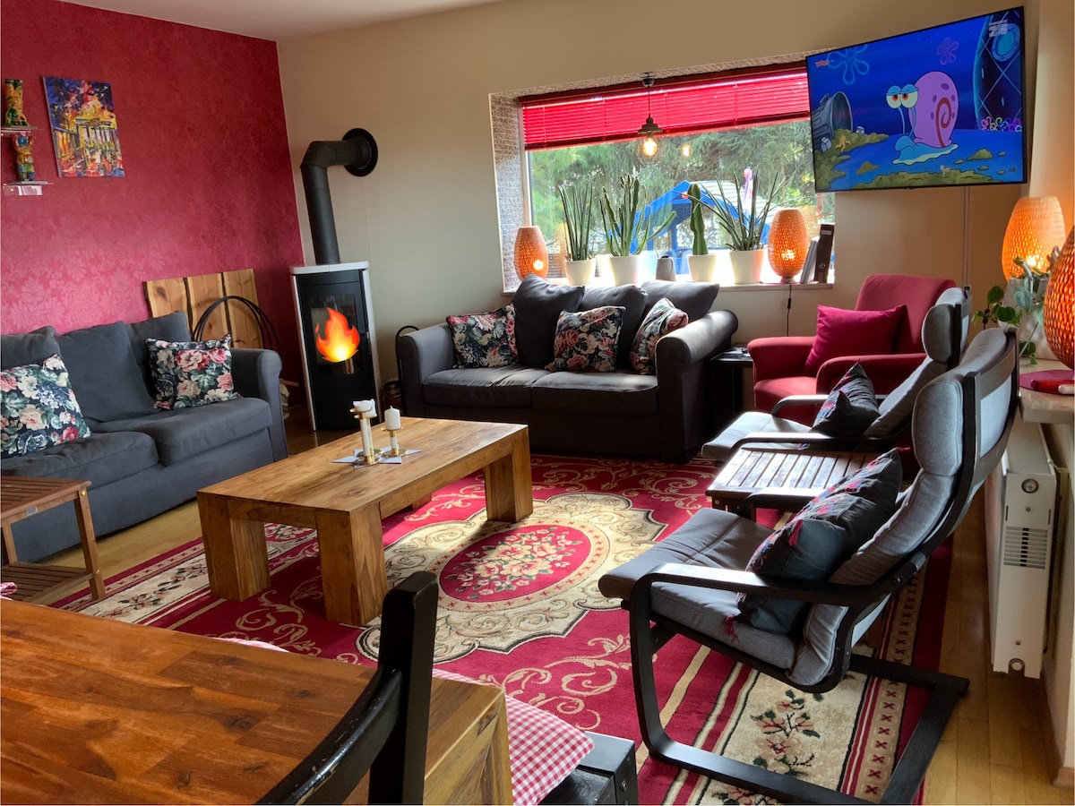 Die großzügige Ferienwohnung verfügt über einen eigenen Zugang, einen großen Flur, eine Küche sowie zwei kombinierte Wohn- und Schlafzimmer. Jedes Zimmer ist mit einem Doppelbett, einem Einzelbett und einem Smart-TV ausgestattet. Das Haus ist vollständig ausgestattet und bietet einen einfachen Standard Eine große Terrasse und ein Grillplatz laden zum Entspannen und Verweilen ein. Inklusive: Bettwäsche, Handtücher, WLAN, Parkplatz auf dem Grundstück, Nutzung von Fahrrädern.