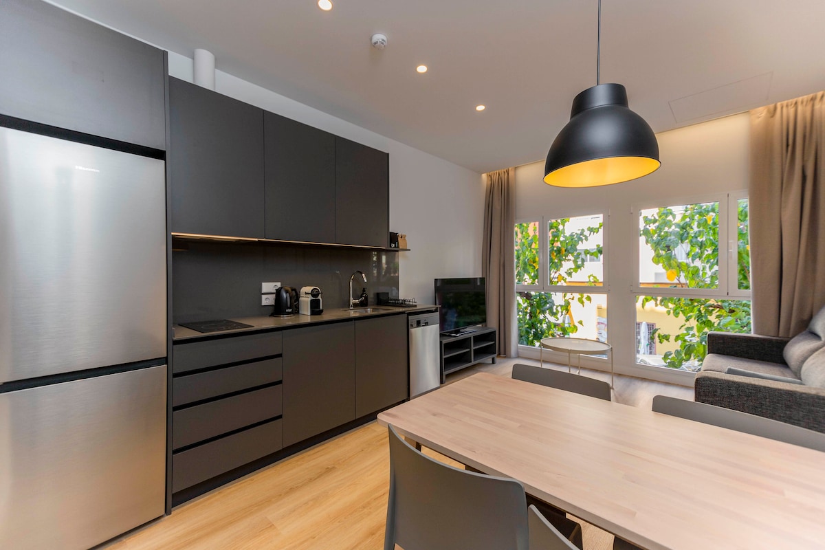 Autocheck-in for a hassle-free arrival 🔑 Jacuzzi on the large terrace to relax 🛁🌅 2 comfortable Queen beds + sofa bed for 2 people 🛏️🛋️ Fully equipped kitchen 🍳🥘 Just 5 minutes walk from the beach 🏖️ Smart TV de 55" con Netflix, Prime Video, etc. para tu entretenimiento 📺 Parking available during the day 🚗 Pet friendly 🐾 Well connected to the city center 🚇 High-speed Wi-Fi 📶