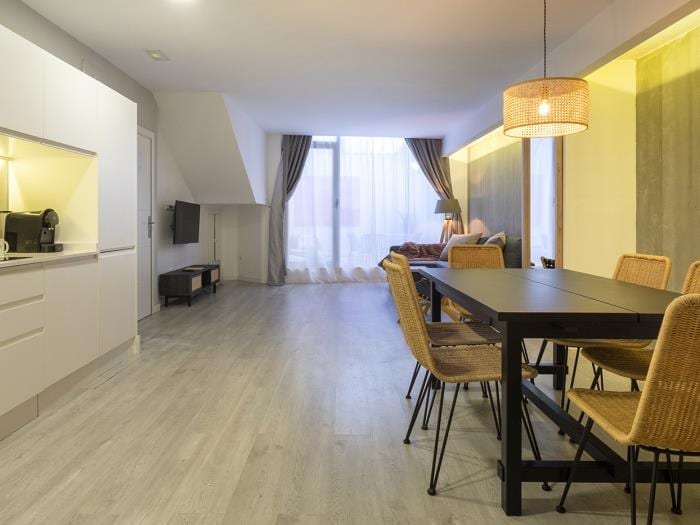 Մնացեք այս բոլորովին նոր, նորաոճ 2 ննջասենյակով բնակարանում, որը գտնվում է Վալենսիայի կենտրոնում ։ Իր բարձր առաստաղներով այս հարմարավետ տարածքը կատարյալ է հարմարավետություն և հարմարավետություն փնտրող ընտանիքների կամ զույգերի համար ։< br >< br >< br> Վերելակով շենքի 1 - ին հարկում գտնվող բնակարանը հեշտությամբ հասանելի է ։ Այն ունի ժամանակակից կենցաղային տեխնիկայով լիովին կահավորված խոհանոց, հարմարավետ բնակելի տարածք և գեղեցիկ արևոտ տեռաս, որը իդեալական է ուսումնասիրման օրվանից հետո առավոտյան սուրճը վայելելու կամ հանգստանալու համար ։