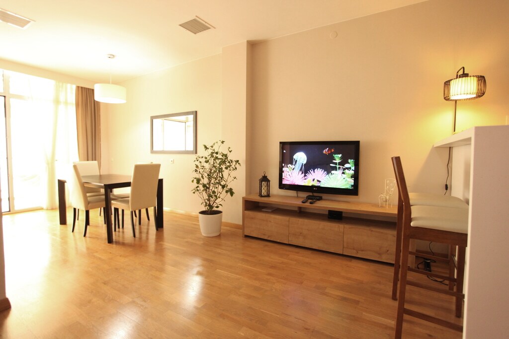 Explore the city from the most coveted address of Tbilisi! Charming and crispy large 1 bedroom apartment with private sunny terrace. ★The best location - just off Rustaveli Avenue, opposite Tbilisi Marriott Hotel ★Major tourist attractions and landmarks are in a walking distance (Opera, Rustaveli Theater, MOMA, National Museum, Liberty Square, Galeria) ★Modern A-class building with reception, 24-hour security and CCTV cameras (most airbnbs in Tbilisi are in outdated buildings with dark entrance