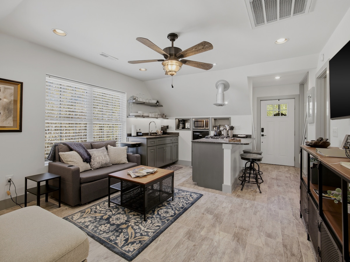 Perfect for a romantic or solo getaway, a sight-seeing trip, or just passing through! This 360 square foot tiny home feels spacious and is convenient with the one story floor plan, high ceilings, natural light, and basic amenities for your stay. There is NOT a TV but there is high speed WiFi is for use on your own device! Just a few minute drive from Tryon and Landrum for dining/ shopping, and plenty to do in the area or just relax and enjoy the beautiful farm!