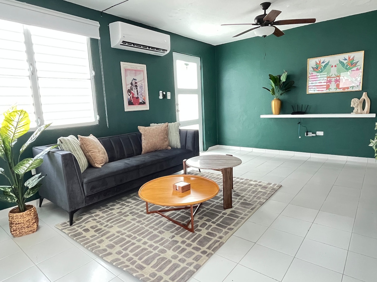 Մեր հմայիչ Airbnb-ն օդանավակայանից ընդամենը 5 րոպե հեռավորության վրա է, մոտ 5 րոպե մեքենայով դեպի այնպիսի հիասքանչ լողափեր, ինչպիսիք են Հոբբի լողափը, Պինյոնեսը, առևտրի կենտրոններ, ինչպիսիք են Սան Խուանի առևտրի կենտրոնը, և գիշերային կյանքը, ինչպիսիք են Իսլավերդեն 5 րոպե հեռավորության վրա և Լա Պլասիտան 10 րոպե հեռավորության վրա Աղմկոտ ճանապարհի երկայնքով տեղակայված մեր տունն առաջարկում է հարմարավետություն ՝ միաժամանակ ապահովելով հարմարավետ հանգիստ ։ Լողափնյա արկածներից կամ շոփինգից հետո հանգստացեք մեր գեղեցիկ նշանակված տարածքում ։ Վայելեք Պուերտո Ռիկոյի լավագույն կողմերը․ ամրագրեք ձեր այցն այսօր։