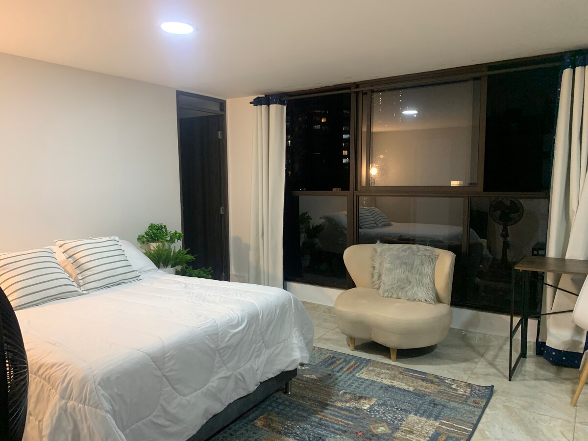 Հրաշալի բնակարան Էլ Պոբլադոյում ՝ երկու ննջասենյակով, երկու ամբողջական լոգասենյակով, ամբողջական խոհանոցով և հարմարավետ հյուրասենյակով ։ Բնակարանի հիանալի տեսարաններ ։ Լավագույն վայրը ՝ ռեստորաններին, առևտրի կենտրոններին և գիշերային կյանքին մոտ ։ Հավերժական գարնան քաղաք Մեդելյնում ձեր լավագույն փորձառությունն ապրելու համար ։ Մենք պահանջում ենք ժամանման ընթացքում ունենալ անձը հաստատող փաստաթղթի բնօրինակը ։