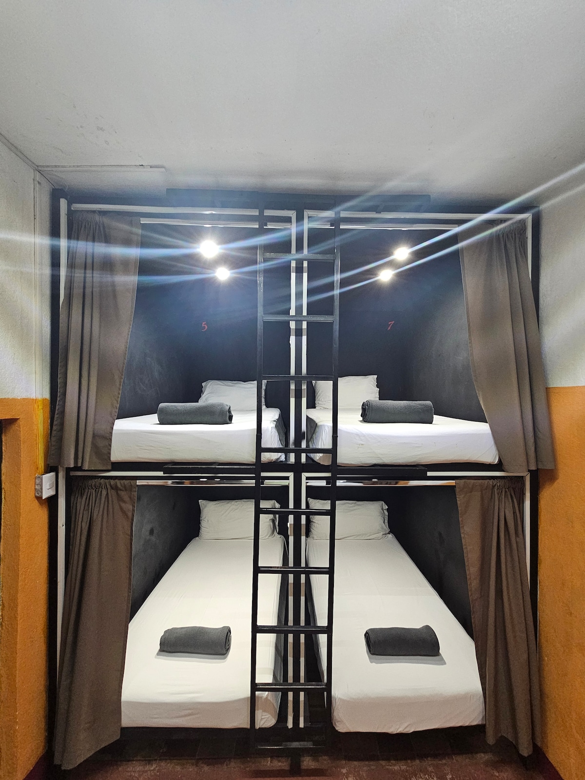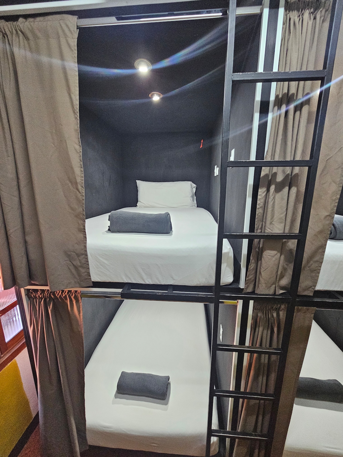 Մենք առաջարկում ենք ընդհանուր սենյակներ պարկուճային ոճի մահճակալներով ՝ ընդարձակ, հարմարավետ և առանձնանալու համար նախատեսված ։ Յուրաքանչյուր մահճակալ ունի վարագույրներ, անհատական ընթերցանության լույս և առանձին էլեկտրաէներգիայի վարդակներ. այն ամենը, ինչ ձեզ հարկավոր է ձեր հարմարավետ տարածքում: Ֆունկցիոնալ կարգավորում, որը միավորում է հարմարավետությունը, գաղտնիությունը և հարմարավետությունը մատչելի գնով ։