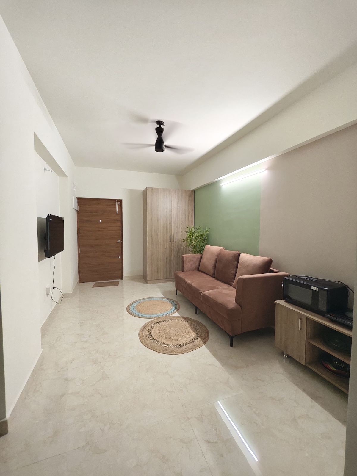 Բարի գալուստ մեր բոլորովին նոր, ընդարձակ 2 - BHK բնակարան, որը իդեալական է հարմարավետություն և հարմարավետություն փնտրող ընտանիքների և զույգերի համար ։ Ննջասենյակներում կան երկտեղանի կամ երկտեղանի մահճակալներ ՝ փափուկ օրթոպեդիկ ներքնակներով ՝ գիշերային հանգիստ քնելու համար ։ Հանգստացեք մեծ հյուրասենյակում ՝ 43 դյույմանոց Սմարթ հեռուստացույցով, կայծակնային արագ Wi - Fi - ով և հատուկ ճաշասենյակով ։ Այն ունի երկու գերմաքուր լոգասենյակ ՝ լոգարանի հիմնական պարագաներով ։ Լիովին կահավորված խոհանոցը ներառում է բարձրորակ կենցաղային տեխնիկա և սպասք ձեր խոհարարական արկածների համար:
