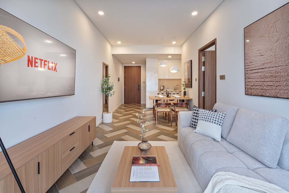 ✨ Special 8% off promotion for long stays. An exquisite urban living right at Nguyen Luong Bang Commercial Road. The creative hub of worldwide “Hybrid Working Life”, where Live – Work - Experience integrates harmoniously. - 2BR, 2-bathroom in a BRAND-NEW building. - Our fully furnished amenities offer everything you need. You can relax and unwind comfortably with modern decor and a warm atmosphere. - 1,4km to SECC. - 1,7km to Crescent Mall. - 8,3km to Ben Thanh Market.