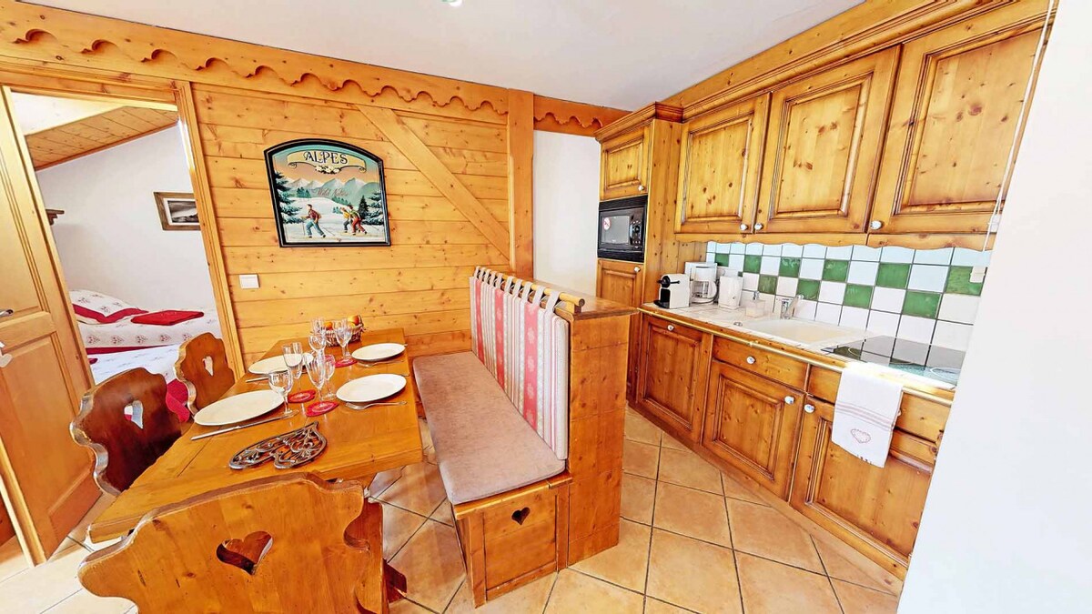 Հանքային և հին փայտի հաջող խառնուրդով այս բնակարանը վերաիմաստավորում է Սավոյարդի շալեի ոճով: Իսկական օրհներգ ՝ ապրելակերպով, ամեն ինչ նախատեսված է լեռան վրա մնալու առավելություններից օգտվելու համար ։ Առանձնահատկություններ. լիովին կահավորված հեղինակավոր բնակարան, Մոն Բլանի ցնցող տեսարաններ, լեռնադահուկային լանջին մուտք, բացօթյա լողավազանով առողջարանային տարածք, ջակուզի և սաունա, ֆիթնես սենյակ, բազմաթիվ անվճար միջոցառումներ Village Five Peaks հավաքածուում