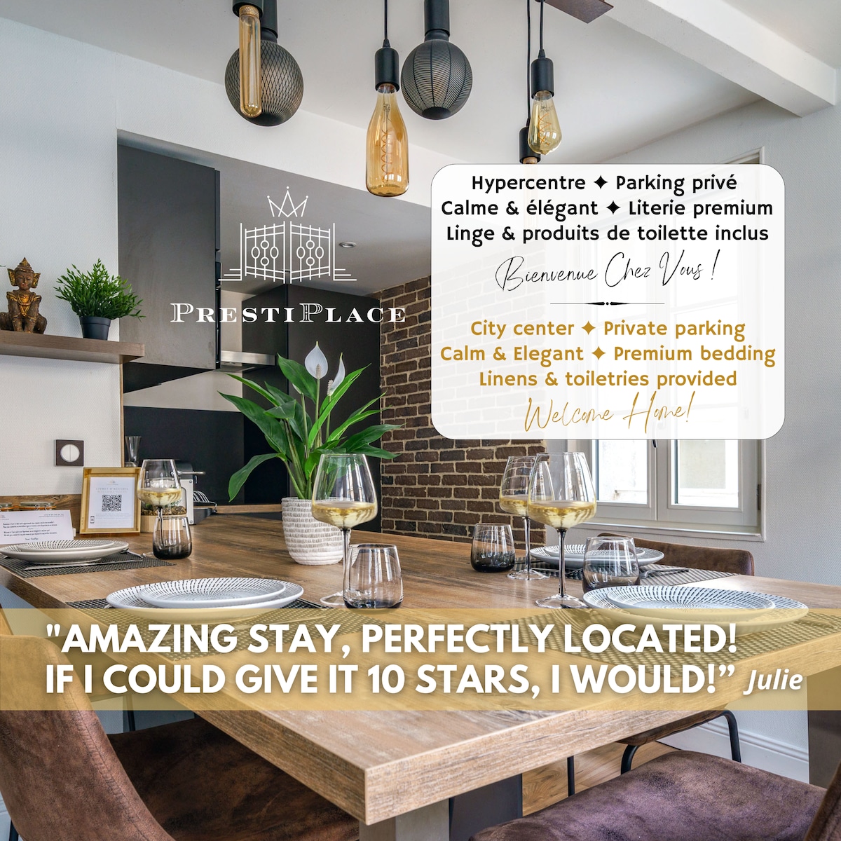 19 - րդ դարի փոքրիկ, հանգիստ շենքում, որը գտնվում է հիպերկենտրոնի մոտակայքում ։ Առաջին հարկում գտնվող 18 - րդ Լուարին դիմավորելը ձեզ ընդունում է ՇԱՏ ՊԱՅԾԱՌ մթնոլորտում ՝ իսկական նյութերով Գեղեցիկ առաստաղի բարձրության տակ գտնվող 60 մ2 - ը ձեզ կհմայի ընտանիքի, սիրահարների, ընկերների կամ մասնագետների հետ հարմարավետ այցերի համար ՝ լիովին կահավորված խոհանոցով, շատ արդյունավետ Wi - Fi - ով և շենքի ստորոտում անվճար կայանատեղիով Վայելեք դրա արտոնյալ վայրը