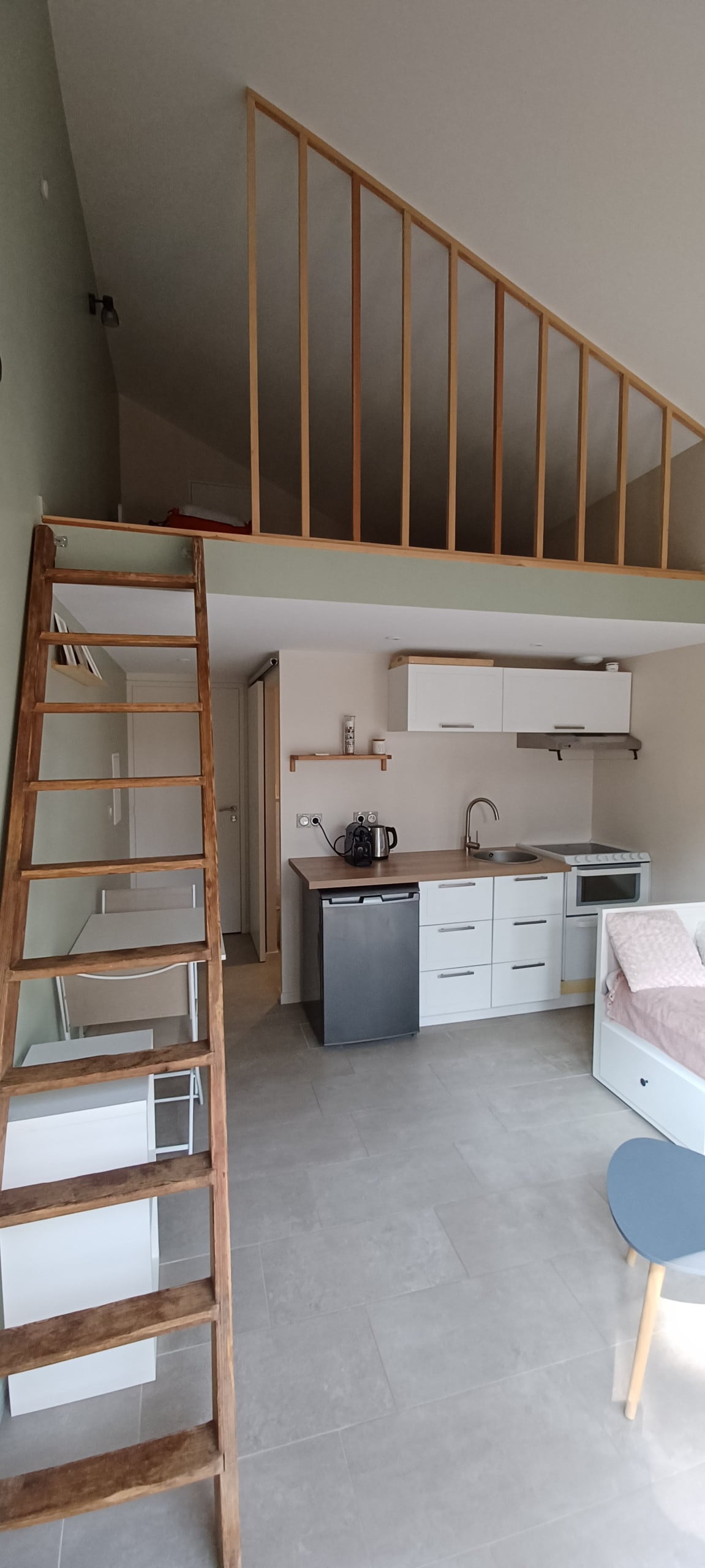 Chambre, salledebain, wc et petit coin cuine. Indépendant, proche centre ville, commerces et mer (accès à pieds, moins de 10 min). Endroit calme, refait à neuf et équipé. Route facile d'accès pour stationnement. Wi-Fi gratuit. Possibilité de fumer à l'extérieur du logement. La cour est commune, avec la maison des propriétaires. Arrivées et départs libres (boîte à clé sécurisée)
