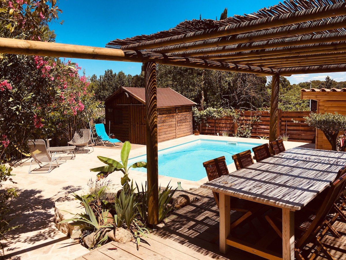 ECRIN DE verdure Logt 60 M2 ( հյուրասենյակ , խոհանոց , 2 hp, 1 բաղնիք + 1 զուգարան ind.)գտնվում է առաջին հարկում մի տան հետ մասնավոր կտուր. հողամաս 28O M2 եւ լողավազան են ընդհանուր է սեփականատերերի. Գտնվում է Մոնպելյեից ( 15 րոպե) և ծովից 2 քայլ հեռավորության վրա ՝ միջնադարյան գյուղում ։ Բոլոր հարմարությունները խանութների և հասարակական տրանսպորտի համար: Անվճար հեծանվավազքի վարկ: Արշավներ տեղում: Մուտք դեպի ֆիթնես սարքավորումներ + բատուտ + սեղան սոճիների տակ......Մուտք իդեալական ընտանիքի համար: