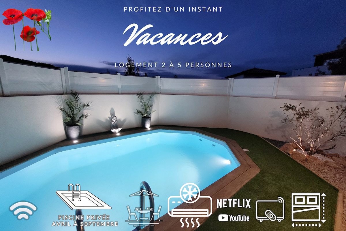Piscine privée élégant clim 20 min plage palavas