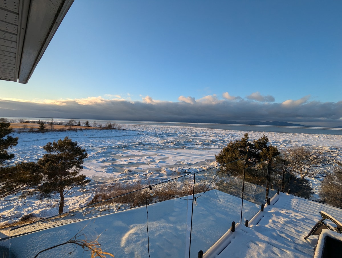 Directement en bordure du Fleuve St-Laurent, Le chalet vous offre tout le confort qu'il vous faut pour passer un agréable séjours au rythme des vagues et des marées...Sans oublier les couchers de soleil...*** Spa sur le Fleuve 4 saisons , Foyer ext.***L'endroit idéal pour relaxer et pour le plein air. Le chalet est équipé des commoditées, Salon, cuisine, Salle à manger...chambre tous avec vue sur le Fleuve. À quelques minutes des meilleurs adresses: Resto, Galerie d'art, Épiceries, Quai. etc