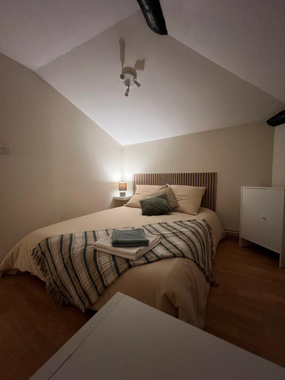 Logement de 30 m2 ayant obtenu 3 étoiles pour les prestations fournies. Labelisé Accueil vélo À l'étage une chambre de 10 m2 avec excellente literie. Canapé-lit 140x190 super confortable pour 2 personnes de plus. Lit parapluie bébé disponible. Linge de lit, serviettes de toilette fournies. Fibre wifi débit 90 Mbps , TV HD, NETFLIX PRIME Lave linge séchant Parking dans la rue ou parking gratuit à 50m Recharge véhicule interdit