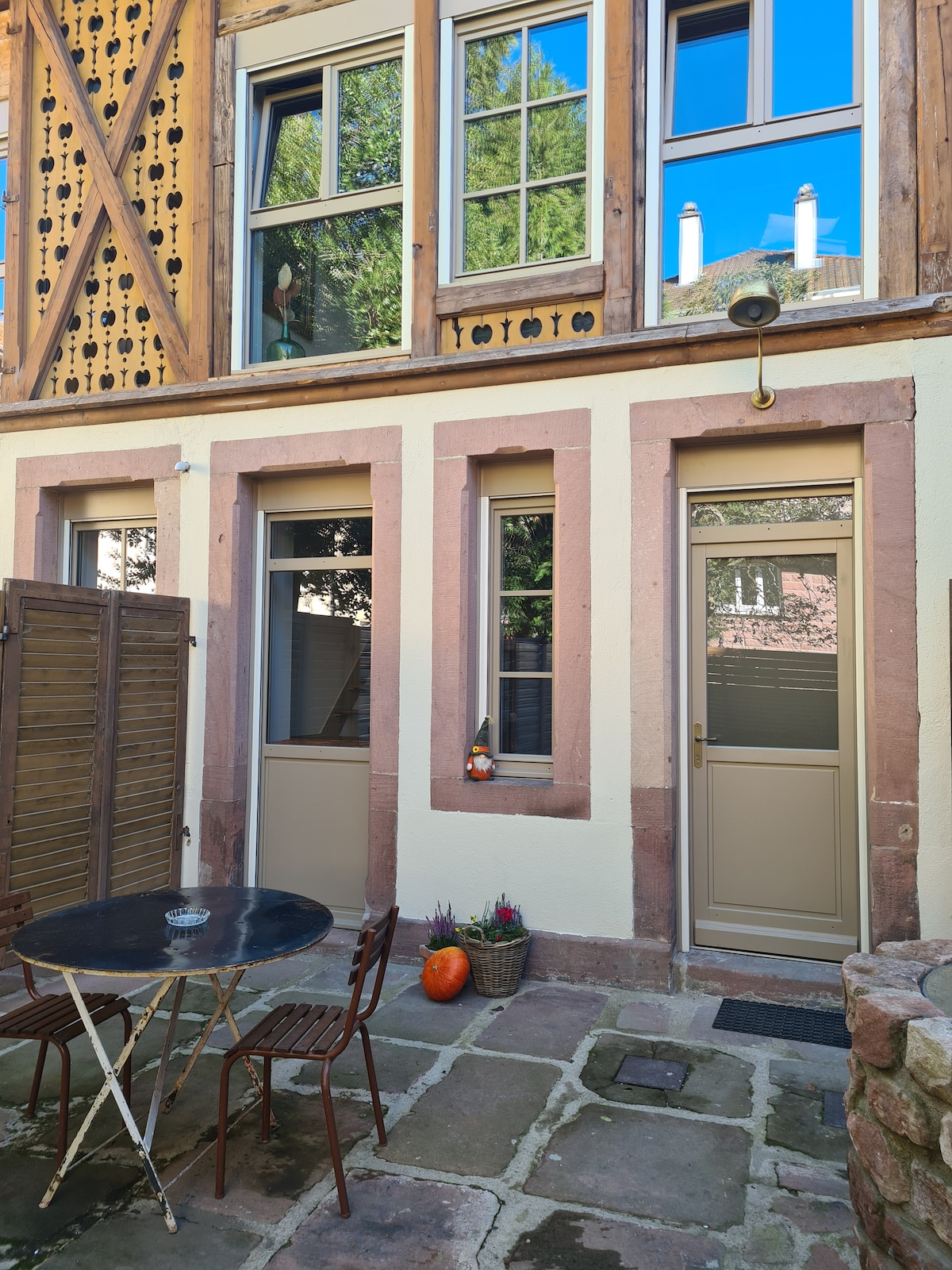 Très bel appartement dans maison d'architecte (style Le Corbusier), entièrement rénové, situé à 10-15 mn à pied de la gare et centre-ville, vue exceptionnelle (écureuils, oiseaux), départ de randonnées. A 30-40 mn des pistes de ski, des lacs, de l'Alsace. A proximité du centre Aqua ludique, bowling, Géopark (pilotage sur piste)... Activités : marche, VTT, Festival International de Géographie, cinéma, musée, Cathédrale, Usine Le Corbusier, marchés de Noël alsaciens. Idéal pour le télétravail !