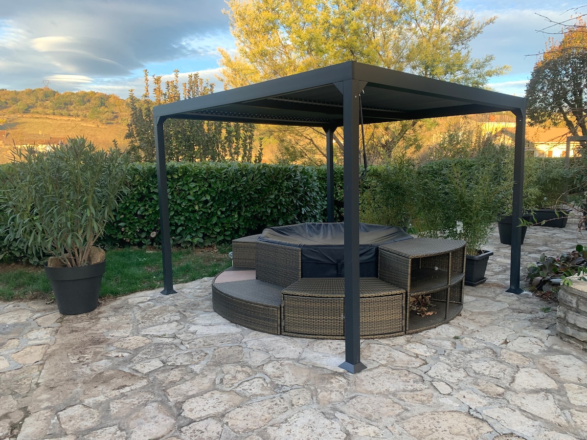 Բացահայտեք մեր 4 աստղանի վիլլայի կամարաշարքն լողավազանով, բալնեո համակարգով ՝ հանգստանալու համար: Մասնավոր և անվտանգ կայանատեղի ՝ դռնով ։ Դուք կգտնեք հիանալի լանդշաֆտ շատ հանգիստ վայրում, որը մոտ է առևտրի կենտրոնին 5 րոպե հեռավորության վրա: Aubenas - ի քաղաքի կենտրոնը ՝ իր հիանալի դղյակներով, 5 րոպեից քիչ հեռավորության վրա, Արկ կամրջի հովիտը 20 րոպե հեռավորության վրա է, որտեղ կարող եք այցելել Արկ կամուրջը, Շավվետ քարանձավը... Ամրագրումները կատարվում են շաբաթից շաբաթ: