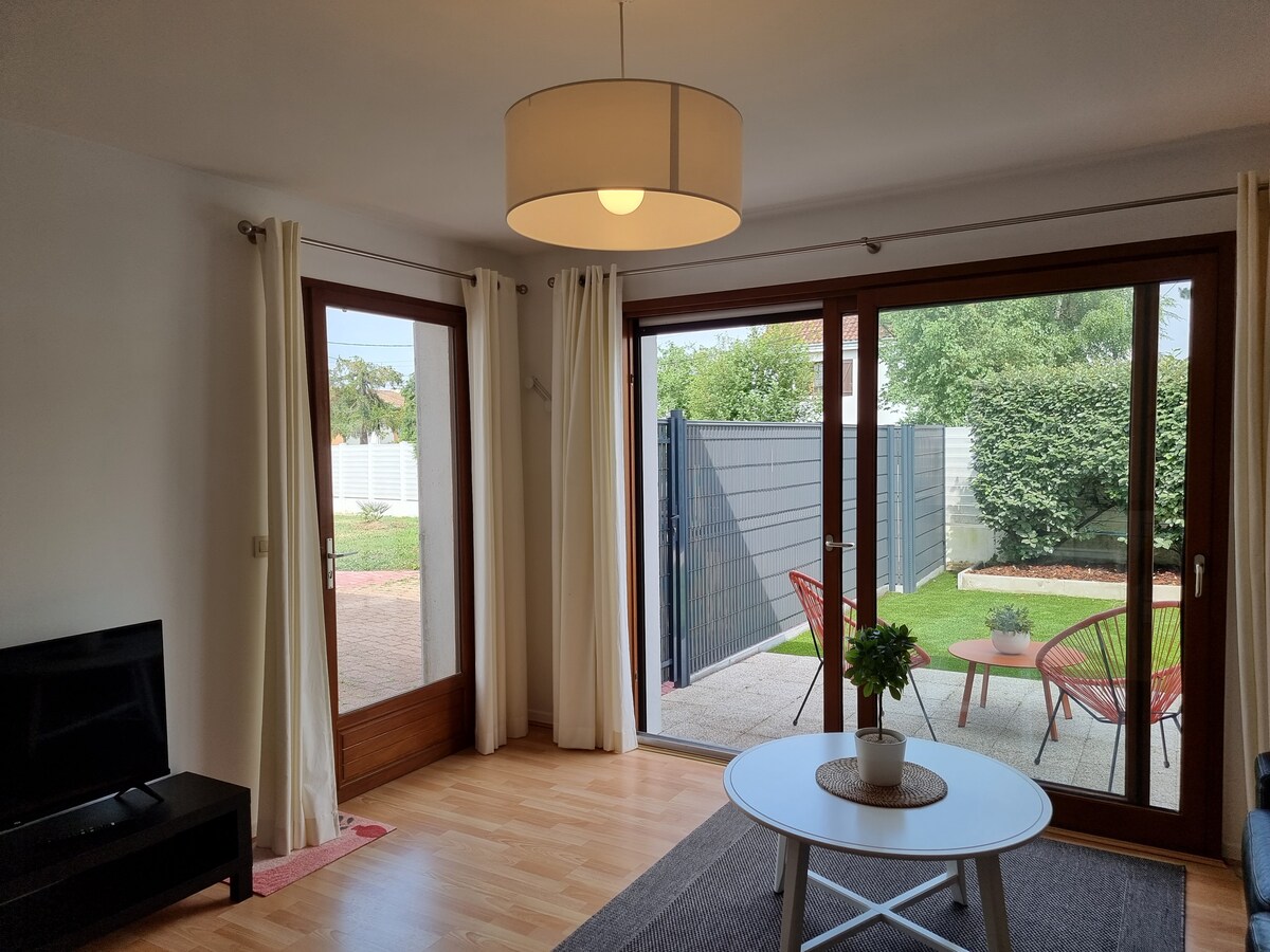 45 մ2 մակերեսով գեղեցիկ բնակարան, որն ամբողջությամբ կահավորված է 2021 թվականին և վերակառուցվել է 2025 թվականին ։ Գտնվում է Վերտուի հարավային թաղամասում ՝ խաղողի այգիների դիմաց և Pôle Sud առևտրի կենտրոնից 5 րոպե հեռավորության վրա ։ Ուղիղ մուտք դեպի տնից զբոսանքներ ։ 20 րոպե մեքենայով Նանտի կենտրոնից: Բնակարանը մեր տան հարևանությամբ է ՝ առանձին կայանատեղով ։ Իդեալական է շաբաթվա ընթացքում կամ հանգստյան օրերին հանգստի համար: Հանգիստ թաղամաս, որը հասանելի է միայն մեքենայով ։