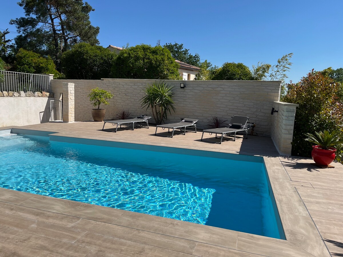 20 mn de Nîmes, Ales, Uzès , 30 mn du Pont du Gard, d'Anduze et sa Bambouseraie en Cévennes. 45 minutes des plages et de la mer. Maison entière, 2 CH, 2 SDE, 2 terrasses, jardin clos, piscine partagée l été. De nombreux sites touristes UNESCO sont à découvrir à proximité ( maison carrée, arènes de Nîmes, pont du Gard, remparts d'aigues mortes..) De nombreuses activités Nature comme canoë, accrobranche, randonnées, vtt, rivières, les grottes, les musées, la route des vins, le pole mécanique.