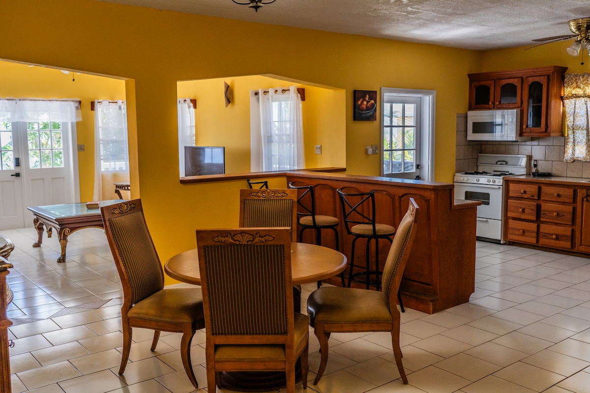 Calm and spacious 3-bed, 2-bath bungalow in Gingerland, ideal for winter-sun stays, returning diaspora and remote workers. Comfortably sleeps up to six and is fully equipped for everyday living with a bright kitchen, dining area and relaxing living space. Mesh screens allow cooling island breezes while keeping insects out. Enjoy garden views and gentle trade winds from the rear balcony — a true home-from-home on Nevis.