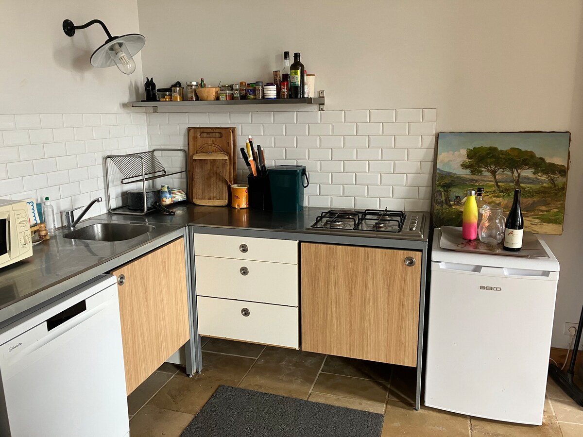 Նոր ստուդիա Լա Կոտինիե գեղեցիկ փոքրիկ գյուղում ՝ նավահանգստից 5 րոպե հեռավորության վրա, խանութներ (հացաբուլկեղենի գործարան, շուկա, հարմարավետության խանութ, հեծանիվների վարձույթ, դեղատուն և այլն) և լողափ ։ Սեփականությունը բաղկացած է ՝ • Լիովին կահավորված խոհանոց, ջեռոց, միկրոալիքային վառարան, ինդուկտ ° գազօջախ, ամանալվաց մեքենա, հեռուստացույց, Wi - Fi... • Բազմոց - մահճակալ ՝ 140 Dunlopillo անկողնային պարագաներ, անկողնային սպիտակեղեն տրամադրվում է ներս մտնող ցնցուղ, լվացարան, զուգարան, վարսահարդարիչ , զուգարանի սպիտակեղեն • պարտեզի լաունջ, խորոված
