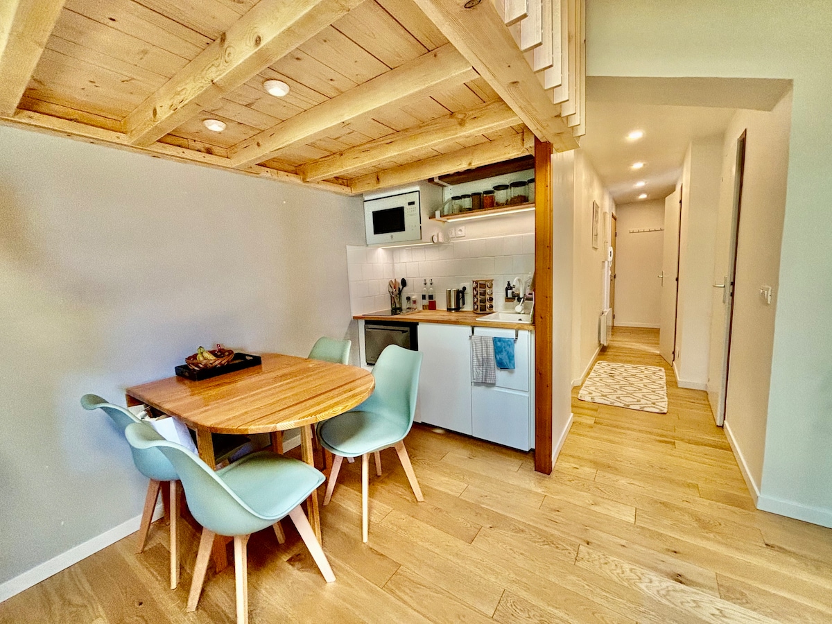 Վերանորոգված և հմայքով լի, իդեալական է երկու հոգու կամ ընտանիքի հետ մնալու համար ։ Սեն Ժերվայս - Մոն - Բլանի մարզական օբյեկտներից 50 մ հեռավորության վրա, կենտրոնին մոտ, կանգառով բնակության վայրի ստորոտում: Ջերմ մթնոլորտ, տրամադրված սպիտակեղեն, կայանատեղի ։ Տարածքը հանգիստ ուսումնասիրելու կատարյալ սկզբնակետ ։ Բնակարանը վերանորոգվել է 2025 թվականի հունիսին ՝ տաք և ժամանակակից ։ Լիովին կահավորված խոհանոց, հարմարավետ հյուրասենյակ, 2 ննջասենյակ, 2 լոգասենյակ, ներս մտնող ցնցուղ ։