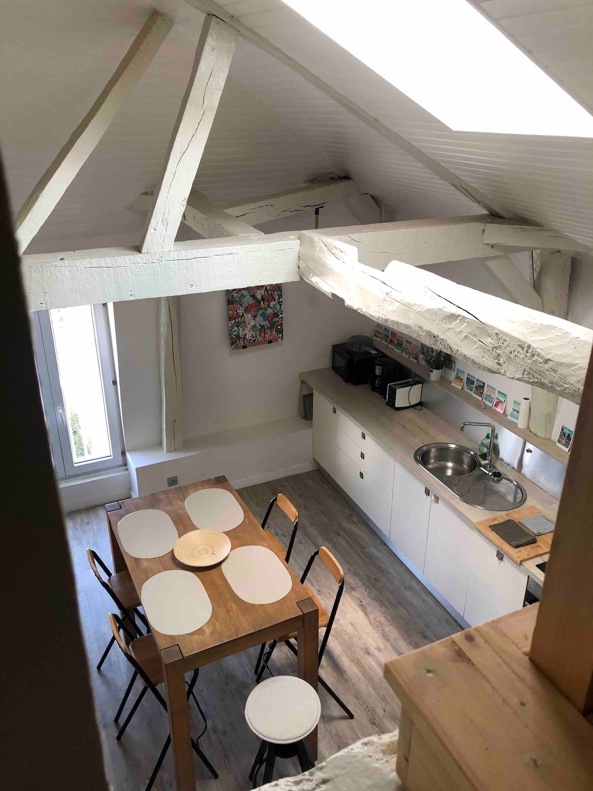 Մեծ ստուդիա, որտեղից 180° տեսարան է բացվում դեպի Աուրայ գետը և Սեն Գուստան նավահանգիստը: Իր երկտեղանի մահճակալով այն կատարյալ է 2 հոգու համար ՝ ձեզ անհրաժեշտ բոլոր հարմարություններով ։ Դուք իդեալական կգտնվեք, որպեսզի ոտքով բացահայտեք Auray - ը, նրա նկարիչների խանութները, շուկաները և ռեստորանները: Մաքրումը և սպիտակեղենը (սավաններ, սրբիչներ, լոգարանի գորգեր, սպասքի սրբիչներ) ՏՐԱՄԱԴՐՎՈՒՄ և ՆԵՐԱՌՎՈՒՄ են ամրագրման մեջ։