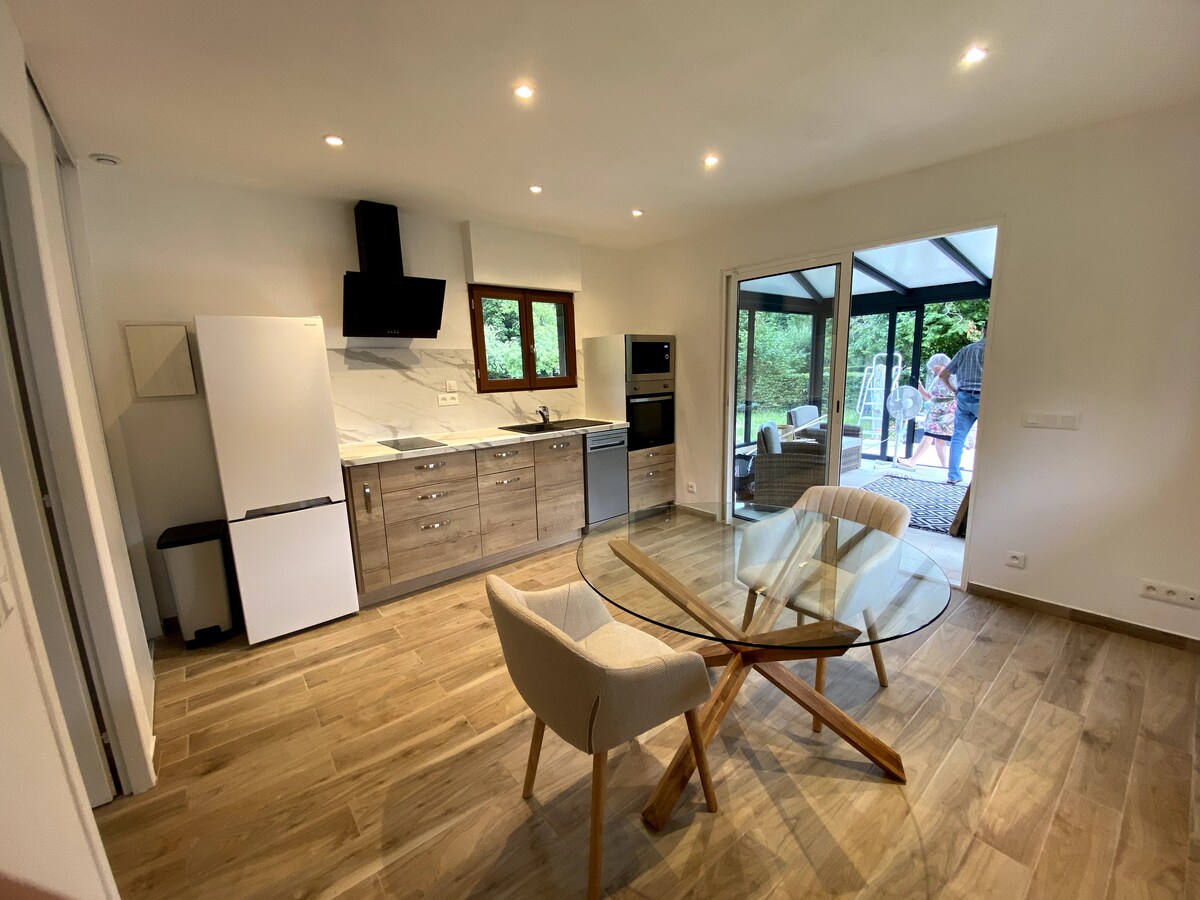 Հանգստացեք այս յուրահատուկ և հանգիստ տարածքում ։ Կենդանիներով և բուսականությամբ շրջապատված այս քոթեջը թույլ կտա փոխել միջավայրը ։ Այս գեղեցիկ տարածաշրջանին հատուկ այցելությունների վայրերին մոտ, լողափից 20 րոպե հեռավորության վրա, Պոնտ լ'Եվեկե լճից 5 րոպե հեռավորության վրա, դուք կարող եք վայելել այս քոթեջը ՝ շրջապատված իր փոքրիկ մասնավոր այգով: Հանգիստ և խաղաղ վայր բնության սրտում, որը կատարյալ է կենդանիների սիրահարների համար ։ Շատ հարմարավետ և լավ կահավորված կացարան, մանրաթելային արկղ, օդորակիչ ։