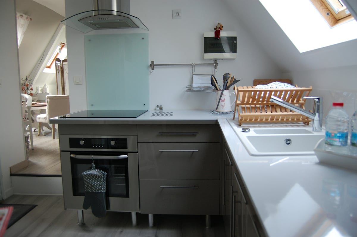 Հատակից մինչև առաստաղը ձգվող պատուհաններով և կտուրով այս տեսարանն առաջարկում է Ռուանի համայնապատկերային տեսարան ։ Այս գերժամանակակից տարածքն ունի մեծ լուսավոր հյուրասենյակ ՝ խոհանոցով, որը բաց է դեպի հյուրասենյակ, հեռավար աշխատանքային տարածք, 2 ննջասենյակ և 1 լոգասենյակ ։ Բացի այդ, դուք կգնահատեք հարմարավետությունը, հանգստությունը և օդորակիչը ։ Անվճար կայանատեղի փողոցում Հեծանիվներ, սկուտերներ կամ մոտոցիկլետներ (ավտոտնակ) կայանելու հնարավորություն ։ Երկաթուղային կայարանից և քաղաքի կենտրոնից ոտքով 20 րոպե հեռավորության վրա ։ Ավտոբուսի կանգառ մոտակայքում