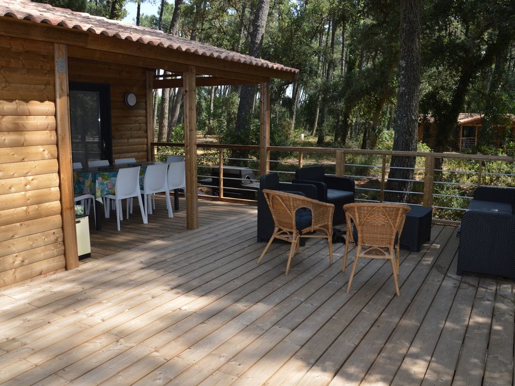 Chalet indépendant en bois, tout confort et parfaitement équipé sur terrain privé de 500m2. Avec ses 2 chambres, sa salle de bain, son salon-cuisine, sa véranda, et sa terrasse extérieure de 30m2, profitez d'un logement cosy entre pinède landaise, étangs et à 9km de l'océan (également par piste cyclable). Le logement se trouve dans le parc résidentiel très nature. Sur une superficie de 3ha, le lieu est calme et reposant. Piscine commune à disposition