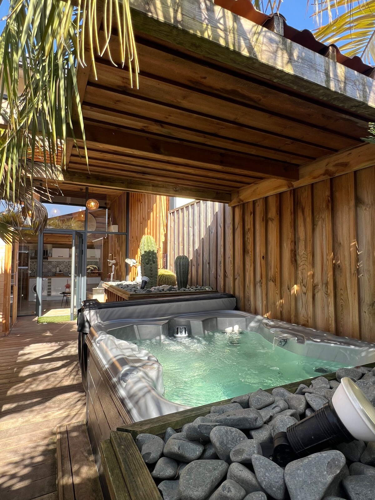 Détendez-vous dans ce logement unique et tranquille. Joli appartement type loft équipé dans un endroit calme. Jacuzzi et sauna privés et accessibles 24h/24 durant toute l’année car ils sont protégés et sans vis à vis Le logement est neuf avec parking gratuit, et accès privé. Idéalement situé entre Bordeaux et le Bassin d'Arcachon