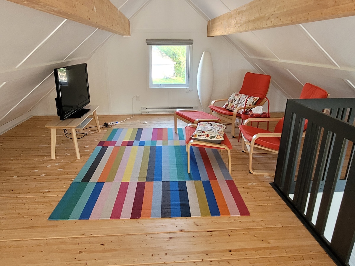 Սկանդինավյան փոքր շալե երկու հոգու համար, որոնք իդեալականորեն գտնվում են ՝ վայելելու Charlevoix - ի տեսարժան վայրերը ։ Այն ունի ջերմային միացում (ջակուզի, շոգեբաղնիք, համամ) Շատ մտերմիկ և անտառների մեջտեղում, տեսարանը նայում է վեհաշուք գետին և հեռվում գտնվող լեռներին: Բոլոր ժամանակակից սարքավորումները կան, իսկ հարմարավետությունը ՝ բացարձակ A/C և բացօթյա բուխարի ։ Բաց կոնցեպտի դիզայնը նախատեսված էր բնության մեջ խորասուզված փորձառության համար ՝ մեծ պատուհաններ, համայնապատկերային ցնցուղարան: Մուտք գործեք մասնավոր ճանապարհով ՝ 500 մ բարձրության վրա ։