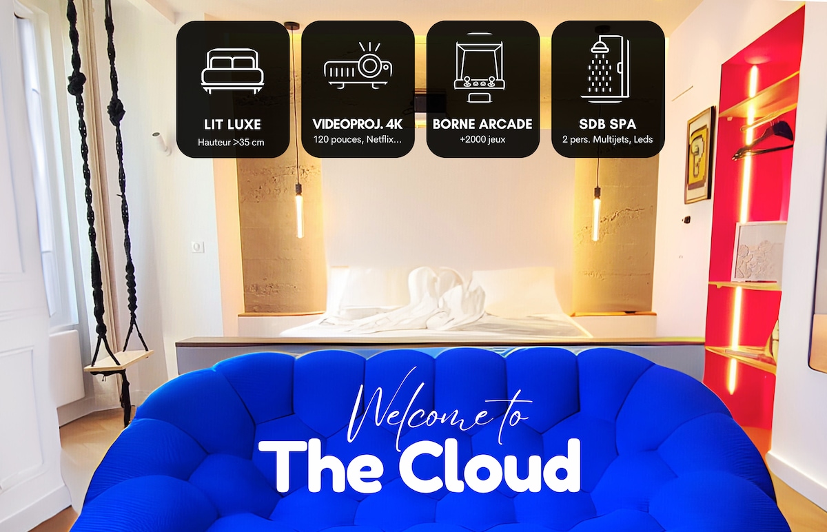 The Cloud, suite de luxe au cœur de Troyes ! Offrez-vous une nuit hors du temps dans une bulle de confort, de design et de sensations. - Lit King Size 5* pour flotter comme Sangoku sur son stratus - Douche sensorielle en Duo - Borne d’arcade avec 8000 jeux - Cinéma 4K immersif - même en journée ! - Balançoire suspendue vue sur les arbres - Canapé nuage sublimé par une aurore boréale LED Réservez votre escapade céleste et laissez-vous porter par les nuages