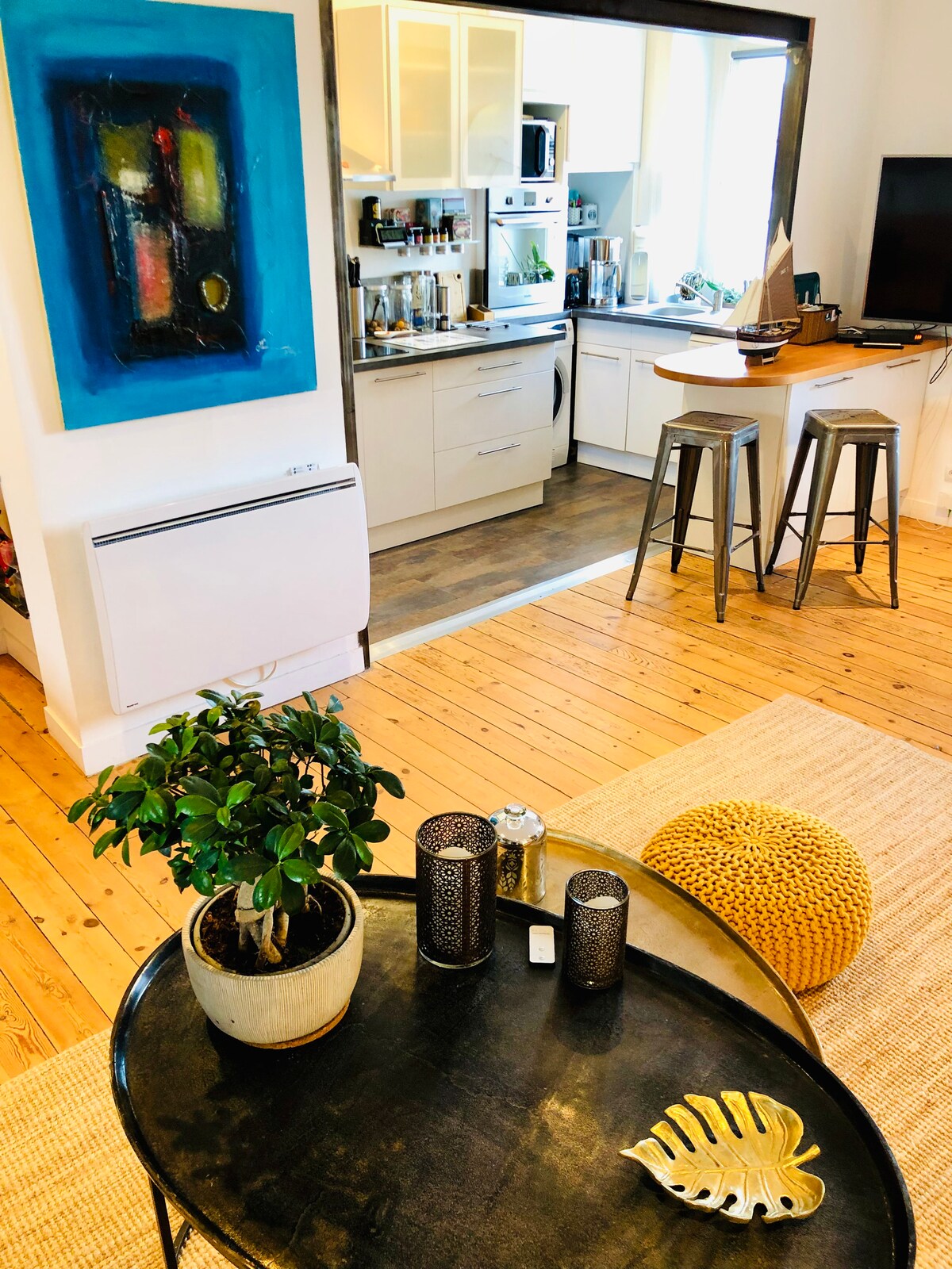 Լողափից և քաղաքի պատերից ընդամենը մի քանի ֆուտ հեռավորության վրա գտնվող այս հարմարավետ և պայծառ դուպլեքսը իդեալական հանգիստ է երկուսի համար ։ Դուք պետք է բարձրանաք 4 սանդուղքով, բայց տեսարանն արժե ջանք թափել : Լողափեր, ռեստորաններ, գնումներ... պարզապես կայանեք ձեր մեքենան և վայելեք ԱՄԵՆ ԻՆՉ ոտքով: Նույնիսկ կարող եք պարզապես գնացքով գնալ, քանի որ կայարանը գտնվում է ընդամենը մի քանի քայլ հեռավորության վրա (20 րոպե) կամ օգտվել հասարակական տրանսպորտից Առավելագույնս վայելեք ձեր օրը և վայելեք մայրամուտը, երբ վերադառնաք :