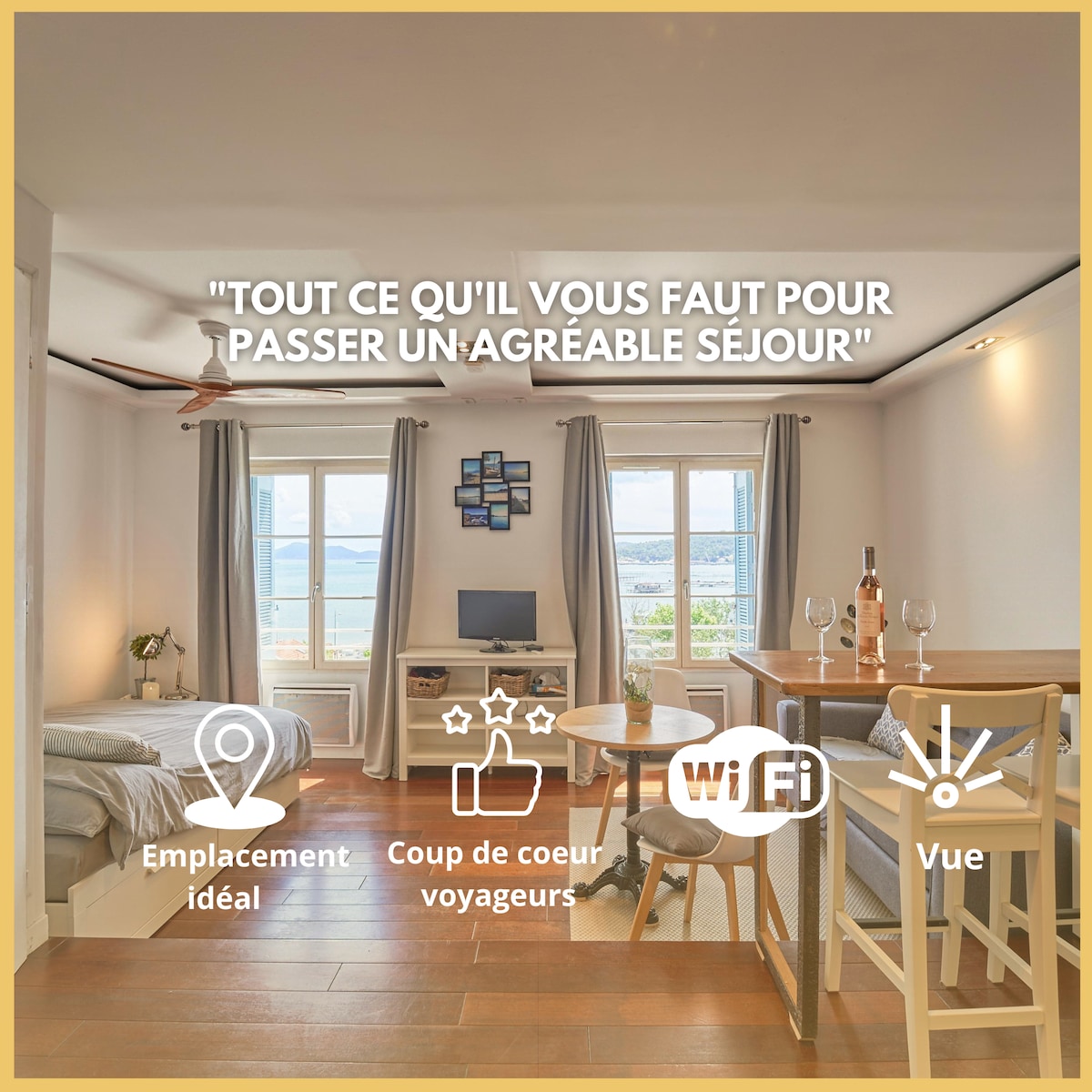 Զգացեք Սեն - Մանդերի սյուր Մեր ՝ միջերկրածովյան զարդերի, Լե Սաբլետսի ավազոտ լողափերի և Տուլոնի հեղինակավոր ռազմական նավահանգստի մոտակայքում, որը հասանելի է նավակով ։ Վայելեք տպավորիչ զբոսանքներ ափամերձ արահետով, գունագեղ պրովանսական շուկաներով և ծովամթերքի յուրահատուկ համերով: Այս հանգիստ, պայծառ և կահավորված ստուդիան իդեալական pied - à - terre է անմոռանալի հանգստի համար միայնակ կամ ընտանիքի հետ ՝ Six - Four - ի, Sanary - ի և Bandol - ի մոտակայքում: