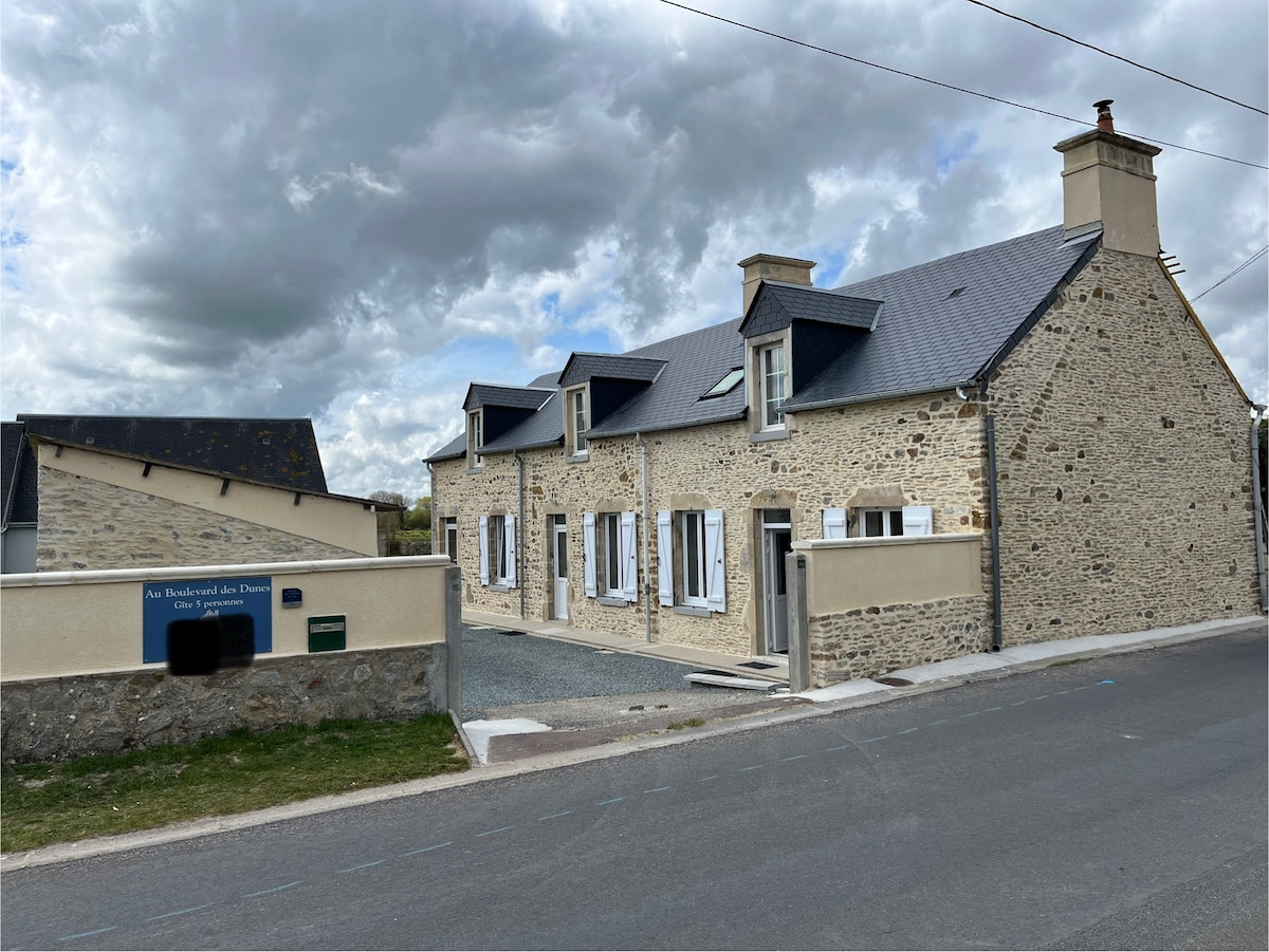 Charmante maison independante en pierres, à 50m de la plage. Les chambres et la salle de bain étant situées à l’étage, la maison n’est pas adaptée aux personnes à mobilité réduite. Chaque pièce est équipée d’un radiateur (sauf le wc du Rdc). Cheminée (insert) Espace convivial en extérieur avec salon de jardin et bbq gaz. Cour privative d’environ 500m2 Vous êtes au cœur des plages du débarquement et de tous les sites mémoriaux (7km Ste Mère Eglise, 5km Musée d’Utah Beach...)