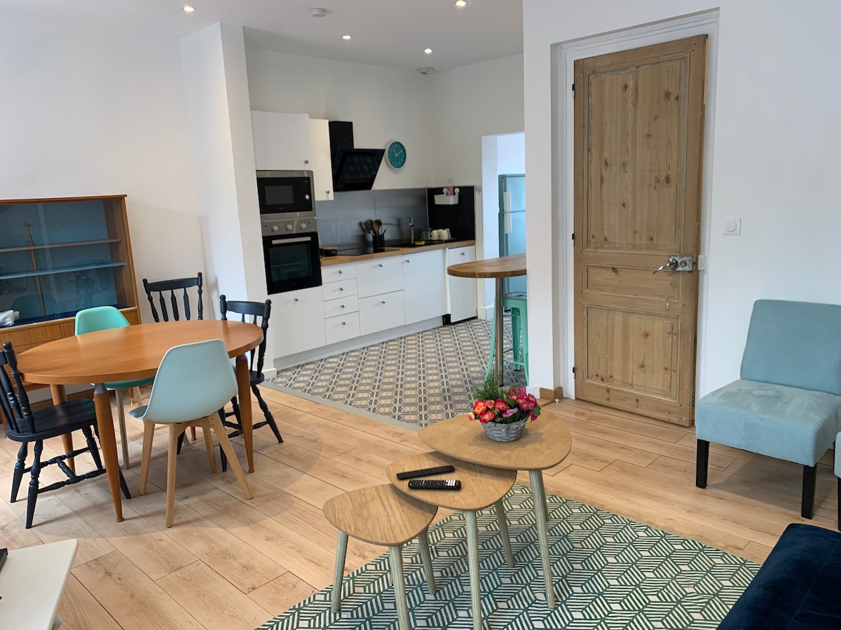 Դուք կգնահատեք 30 մ2 մակերեսով այս փոքրիկ անկախ քարե տունը ՝ իր հարմարավետ ինտերիերով, որոնք ամբողջովին վերանորոգված են 2 հոգու համար ՝ 4000 մ2 մակերեսով, փակուղու վերջում: Հանգիստ և բնությունը երաշխավորված է: Լիովին կահավորված խոհանոց (սառնարան, միկրոալիքային վառարան, ներկառուցված ջեռոց, ինդուկցիոն ջեռոց, ամանալվաց մեքենա, սրճեփ մեքենա, տոստեր) Ցնցուղարան, սրբիչներ 160x200 բրենդային անկողնային պարագաներ և անկողնային սպիտակեղեն Բազմոց, հեռուստացույց, Netflix Անձնական տեռաս, կայանատեղի կացարանի դիմաց