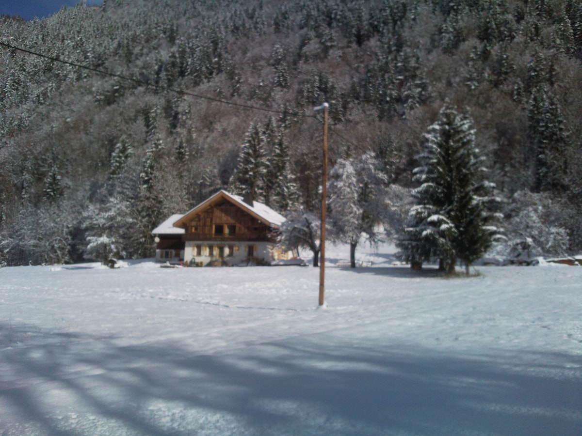 Հարմարավետ և ռոմանտիկ առաջին հարկի բնակարան Սավոյարդի հարմարավետ քոթեջում ՝ լիովին կահավորված խոհանոց, առանձին իտալական ցնցուղ, սպասասրահ ՝ էլեկտրական բուխարիով և հատակի ջեռուցմամբ, հեռուստացույց, ննջասենյակի գրասենյակային տարածք ։ Մեծ տեռաս ՝ հագեցած հիասքանչ օդային տեսարաններ դեպի Combloux les Aravis և Fiz ՝ Մեգևի արքայադստեր (Domaine Evasion Mont Blanc) գոնդոլից ընդամենը 1,5 կմ հեռավորության վրա, բազմաթիվ զբոսանքների մեկնում (ձնահյուսերի վարկ )։ Անվճար կայանատեղ բնակարանի դիմաց ։