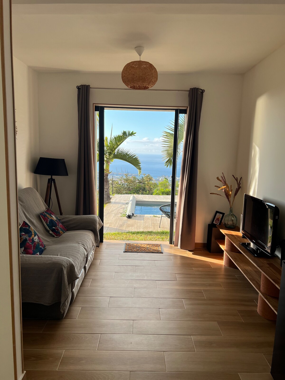 Մեր հմայիչ բունգալոն ՝ ծովի տեսարան դեպի Սեն - Լեու (կենտրոնից 10 րոպեից պակաս հեռավորության վրա և 250 մ բարձրության վրա), գտնվում է հանգիստ և կանաչ միջավայրում ։ Իդեալական է զույգի համար ։ Այն գտնվում է մեր տան ներքևում ։ Մենք երեխաներին չենք ընդունում անվտանգության նկատառումներով ։ Բունգալոյի հարևանությամբ գտնվող մասնավոր լողավազանը իդեալական կլինի օրվա վերջում հանգստանալու համար ։ Սառնարանի, Senseo սրճեփի, թեյնիկի և միկրոալիքային վառարանի առկայություն ։ Wi - Fi դրսում, լողավազանի մոտ ։