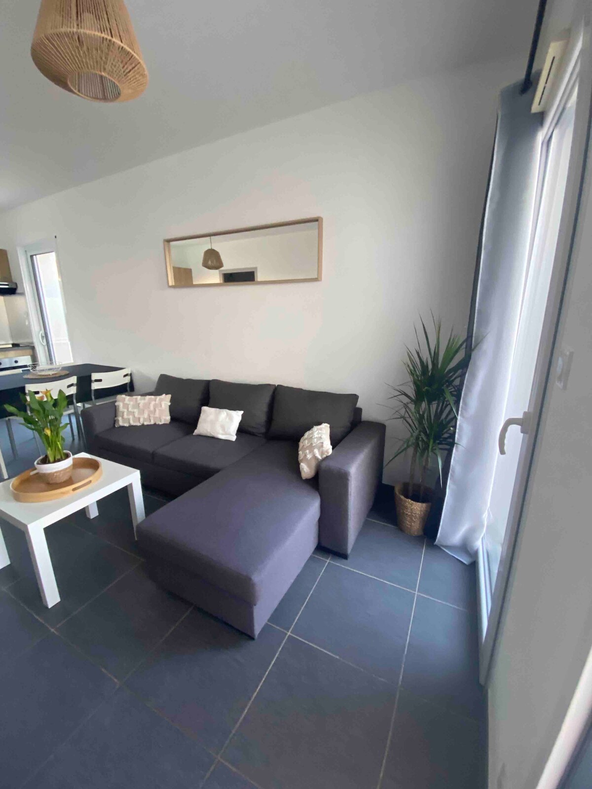 Այս լուսավոր 70 մ2 մակերեսով տանը ձեր այցը կլինի հանգիստ և հարմարավետ ։ Վայելեք հարմարավետ հյուրասենյակ, երեք ընդարձակ ննջասենյակ, լիովին կահավորված ժամանակակից խոհանոց, լոգարանով մեծ լոգասենյակ և տեռասով մասնավոր այգի ՝ լողափերից ընդամենը 10 րոպե հեռավորության վրա: Իդեալական վայր է հանգիստ տարածքում և հարմարություններին մոտ ՝ սա կատարյալ վայր է ձեր մարտկոցները ընտանիքների կամ ընկերների խմբերի համար վերալիցքավորելու համար ։