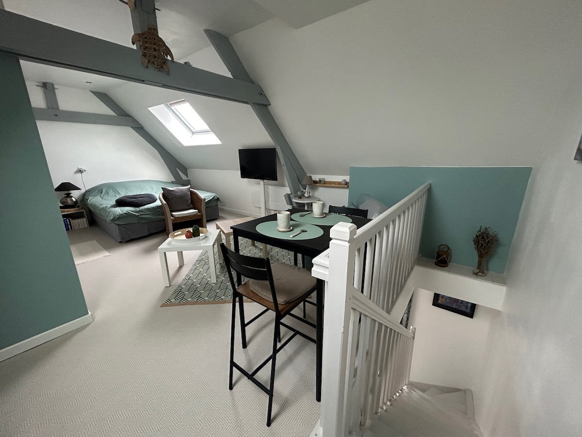 Վերջերս վերանորոգված 20 քմ անկախ ստուդիա հիմնական տան նկուղում, անկախ մուտքով (ննջասենյակ և առանձին լոգասենյակ): Ստուդիան չունի խոհանոցիկ: Հագեցած է մինի սառնարանով, միկրոալիքային վառարանով, սրճեփով, թեյնիկով, թեյնիկով: Հանգիստ գտնվում է ափին Cher եւ 7 րոպե մեքենայով Tours քաղաքի կենտրոնից, 15 րոպե հեծանիվով: Այնպես որ, եթե հանգստություն եք փնտրում քաղաքին մոտ, ահա այս վայրն է ։ Ավտոկայանատեղին հասանելի է տան բակում ։ Փակ է ։