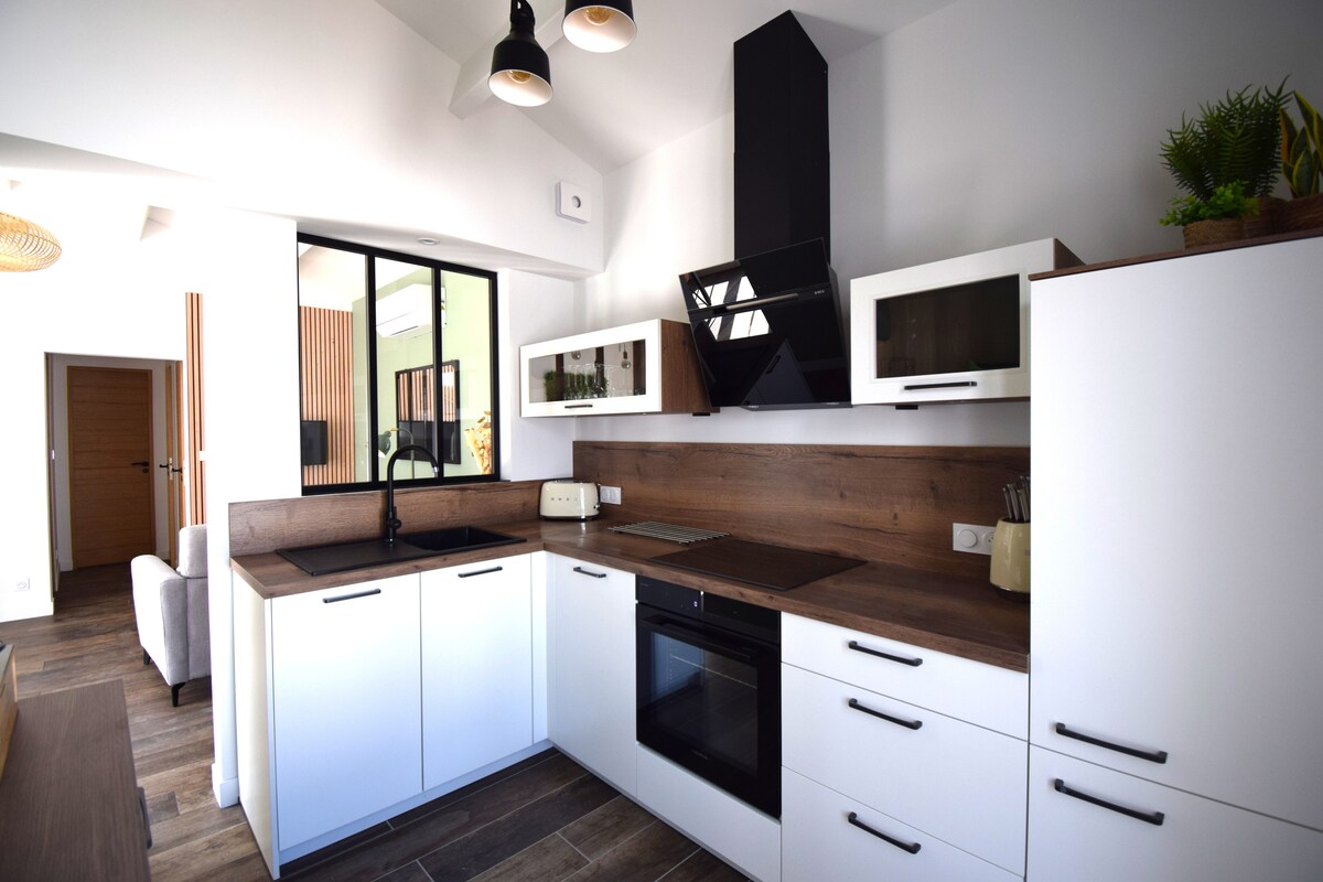🏡 Logement au style unique avec 2 chambres confortables, cuisine équipée et salon lumineux donnant sur la piscine. 🌿 Profitez d’un espace repas ombragé idéal pour vos soirées, d’une piscine avec terrasse couverte pour vous rafraîchir et d’un stationnement privé avec borne de recharge pour véhicule électrique. Un lieu parfait pour un séjour en famille, entre amis ou en couple, placé sous le signe de la détente.