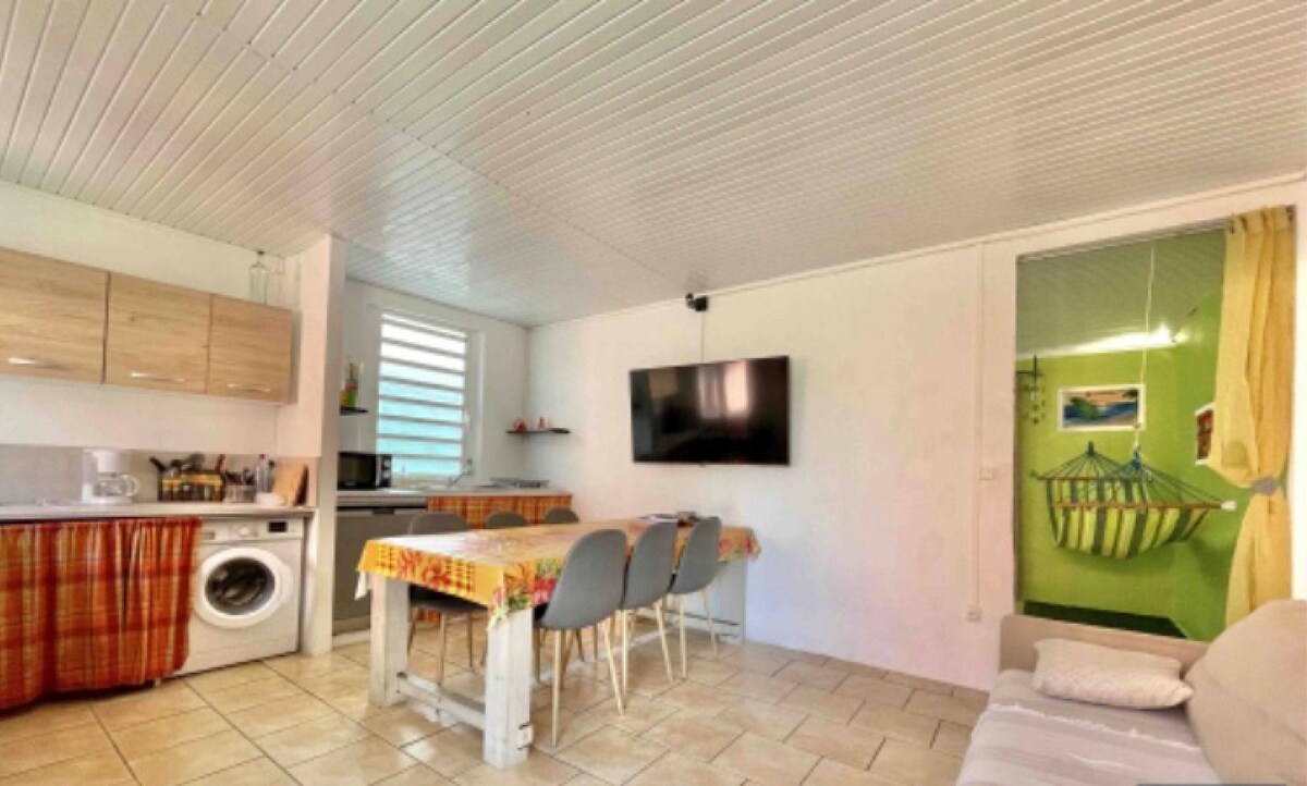 Այս կրեոլական տունը գտնվում է հանգիստ, բնակելի թաղամասում և գտնվում է 500 քառակուսի մետր ծառերով լի պարտեզի սրտում ։ Այն ձեզ ողջունում է գույնի և խաղաղության ապաստարանում ՝ այգու թռչունների երգով և փայտե պատերի մեջ կյանքի քաղցրությամբ ։ Խաղաղ, ջերմ և իսկական ապաստան, շատ հեշտ հասանելի, Սեն - Պիերից քար, հարմարություններ և Հյուսիսային Կարիբյան ծովի բոլոր գանձերը ։ Այստեղ յուրաքանչյուր պահը ձեզ հրավիրում է անջատելու և երազելու ։