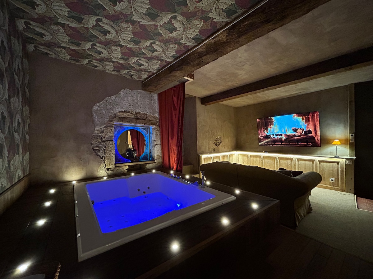 Այս փոքրիկ տունը, որը պատրաստված է ատիպիկ այրված փայտից և հագեցած սպա կենտրոնով, ողջունում է ձեզ հանգիստ և անբռնազբոս միջավայրում ՝ երկուսի համար նախատեսված բուկոլիկ հանգստի համար 🏡🌿 Այն ձեզ կառաջարկի ժամանակակից բոլոր հարմարությունները ՝ գտնվելով Պերիգորդ գյուղական վայրում ։ Երկու կողմերում գտնվող երկու ընդարձակ և ստվերապատ կտուրների շնորհիվ կարող եք վայելել սպա կենտրոն ՝ դաշտերի անշուք տեսարաններով և մի կողմից երկու սիրալիր ավանակներով հատած մարգագետնով, ինչպես նաև անտառապատ այգի մյուս կողմից ։ 🌳🐴