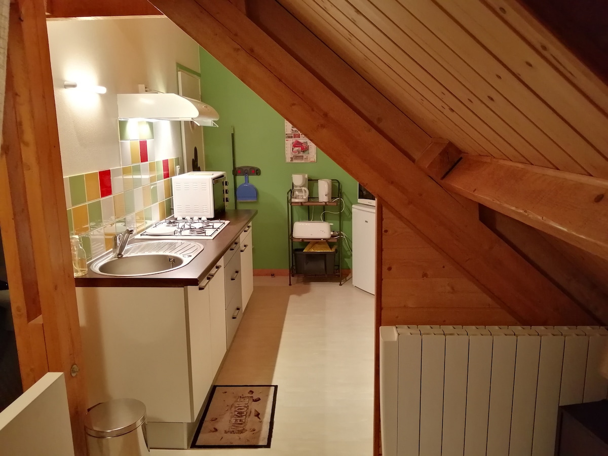ՀՄԱՅԻՉ կոկունինգի ստուդիան դասակարգել է 2 աստղ 1 etg mansardé de 3 velux - ում (սև վարագույր )։ Առանձին մուտք դեպի առանձին տեռասով և փակ հողային ավտոտնակով, որը հնարավոր է իդեալական 1 զույգի կամ 1 անձի համար +1 enf խոհանոց ,միկրոալիքային վառարան,ջեռոց ,սառնարան , սենսեո, սառցարան, ռակետ, տոստեր, սրճեփ, արդուկ , տանտեր, 3 գազ ։ Բնակելի տարածք ՝ 1 մահճակալով 140 x 190 , 2 բազկաթոռ + ճաշասեղան 2 աթոռ, հեռուստացույց, Wi - Fi, ռադիո, լվացարան , պարտեզի կահույքի մանղալ ։