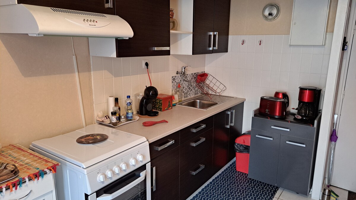 Իդեալական է երկու հոգու համար, 20 մ2 մակերեսով հարմարավետ ստուդիան ամբողջությամբ վերանորոգված է և գտնվում է երրորդ հարկում ՝ վերելակով ։ Եկեք և վայելեք այս հարմարավետ, լավ կահավորված բույնը, որտեղ տարածքները լավ շահագործված են: Պատշգամբը ձեզ հնարավորություն կտա վայելելու տեսարանն ու բացօթյա հանգիստը ։ Գտնվելով Բուրբուլե քաղաքի կենտրոնից մեքենայով 5 րոպե հեռավորության վրա (ոտքով 15 րոպե) այն ձեզ հնարավորություն է տալիս հեշտությամբ կայանել ՝ շնորհիվ բնակության վայրի մեծ կայանատեղիի ։ Մոտակայքում գտնվող առևտուր ։ Հատուկ բուժման հաճախականություն ։