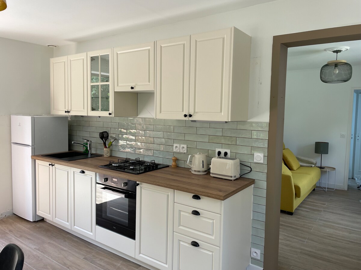 Le Vérotin, 7 հոգու համար նախատեսված հմայիչ քոթեջ ՝ ամբողջովին վերանորոգված մասնավոր սպա կենտրոնով ՝ Գավրայից 2 կմ հեռավորության վրա, լողափերից 15 կմ հեռավորության վրա, Գրենվիլից 20 կմ հեռավորության վրա ։ Le Vérotin - ը ողջունում է ձեզ բուկոլիկ միջավայրում ՝ մարտկոցները վերալիցքավորելու համար: Քոթեջում կա կայանատեղ, Wi-Fi (4G բանալիով, շատ թույլ կապ), պարտեզ, որակյալ անկողնային պարագաներ, այդ թվում՝ 2 king size չափի մահճակալ և մասնավոր ջակուզի՝ 36° ջերմաստիճանով և անսահմանափակ մուտքով։ 3 ննջասենյակ, որոնցից մեկը հասանելի է հարթակի սանդղամուտքով։ Մի սպասեք, որ ձեզ հաճոյանա։
