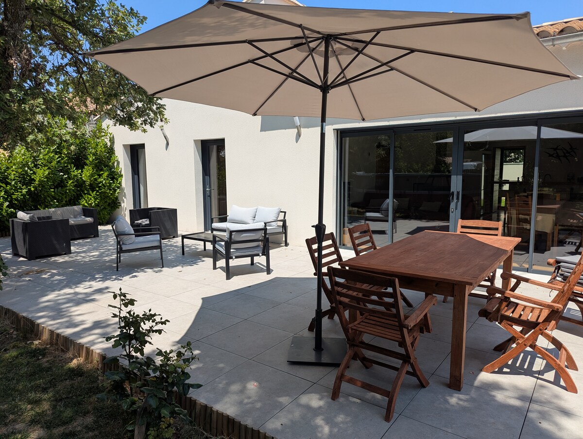 Dwelling description This new spacious accommodation includes a very large room "living room kitchen" and 2 bedrooms. These each have a double bed. In one, a dressing room will be useful and practical to prepare an evening or an event ( wedding...). You will find a large and functional bathroom for toddlers. In addition, a crib with bars, a sofa bed 1 place are available. Swimming pool open from June to September. Pets not allowed.