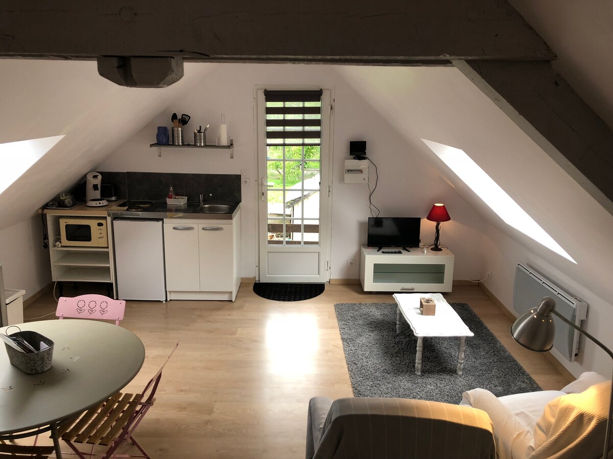 Ստուդիա 17 - րդ դարի որսորդության/պահակների քոթեջ մասնավոր այգում. Ընդհանուր գաղտնիություն. ընդհանուր խաղաղություն, առանց մեկուսացման զգացողության: Կարդացեք բուխարու մոտ կամ զբոսնեք մոտակայքում գտնվող բաց դաշտերում ։ Ընդհանուր լռությունը, նապաստակները եւ roe անցնում է.......եւ մեր min PIN Willy մի որոշ ժամանակ. Գտնվում է լողափից ընդամենը 15/20 րոպե հեռավորության վրա և հետաքրքրաշարժ Լե Հավրից ։ Ամրագրումներ ՝ նվազագույնը 2 (երկու) գիշեր ։ Շներին ջերմորեն ողջունում են....