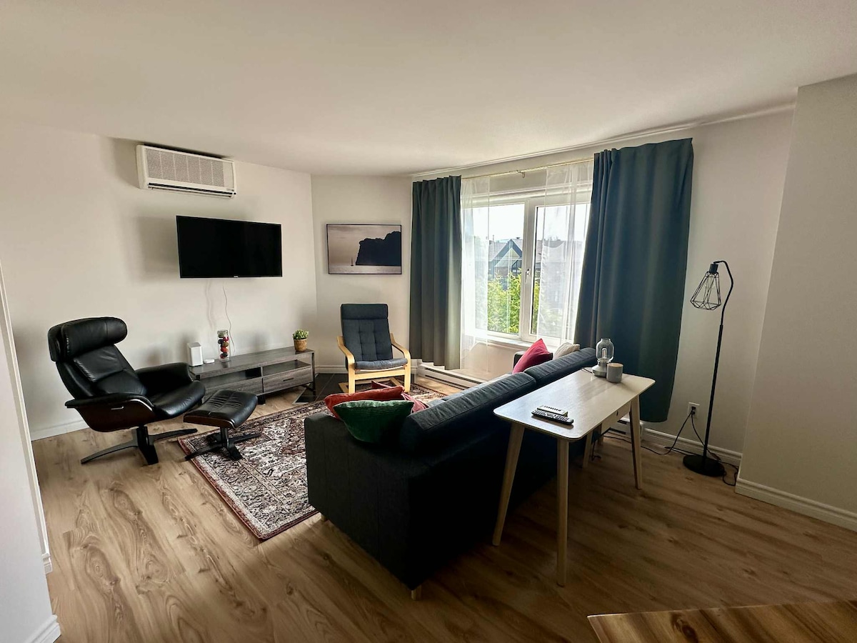 Քայլեք դեպի Հաճելի հանգիստ Բոհո ՝ պայծառ և ոճային կոնդոմինիում, որը գտնվում է Քվեբեկ քաղաքի սրտից ընդամենը 10 րոպե հեռավորության վրա ։ Զույգերի կամ փոքր ընտանիքների համար նախատեսված այս հանգիստ հանգստավայրը համատեղում է բոհեմական հմայքը ժամանակակից հարմարավետության հետ՝ առաջարկելով կատարյալ վայր հանգստանալու, վերականգնվելու և քաղաքն ամեն ինչ ուսումնասիրելու համար։✔ Մտրակեք ձեր սիրած բաղադրատոմսերը մտածված կահավորված խոհանոցում ✔ Առանձին ջակուզի, որը նախատեսված է լավագույն սպա հանգստի համար ✔ Հարմարավետ էլեկտրամոբիլի լիցքավորիչ ՝ հեշտությամբ լիցքավորելու համար