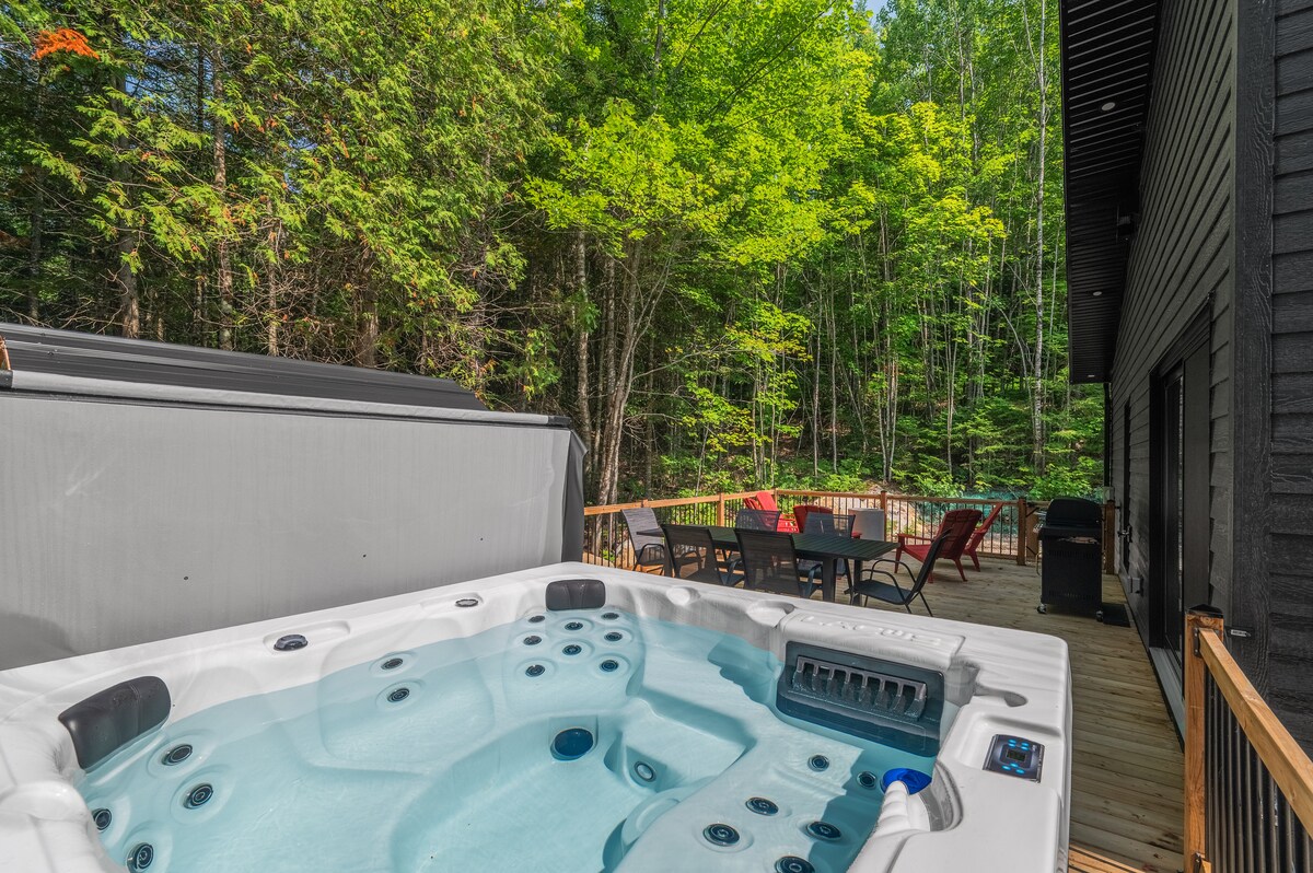 Բարի գալուստ Լա Խաբինե ։ Այս հարմարավետ, ժամանակակից տնակն ունի այն ամենը, ինչ անհրաժեշտ է բնության հետ հանգստանալու և շփվելու համար ։ Վայելեք մի բաժակ գինի ՝ փայտի այրվող բուխարիում բռնկված կրակի ձայնով ։ Շրջակա հատակից մինչև առաստաղի պատուհաններից բացվեք անտառի տեսարանով ։ Հանգստացեք մասնավոր բացօթյա եղևնու տակառի շոգեբաղնիքում ։ Բնական ինքնասպասարկման միջոցները, վառելափայտը, լվացքի օճառը և գերարագ Wi - Fi - ը բոլորն անվճար են ։ Հուսով ենք, որ ձեզ դուր կգա պատուհանների մեր փոքրիկ տնակը, որքան մենք անում ենք:)